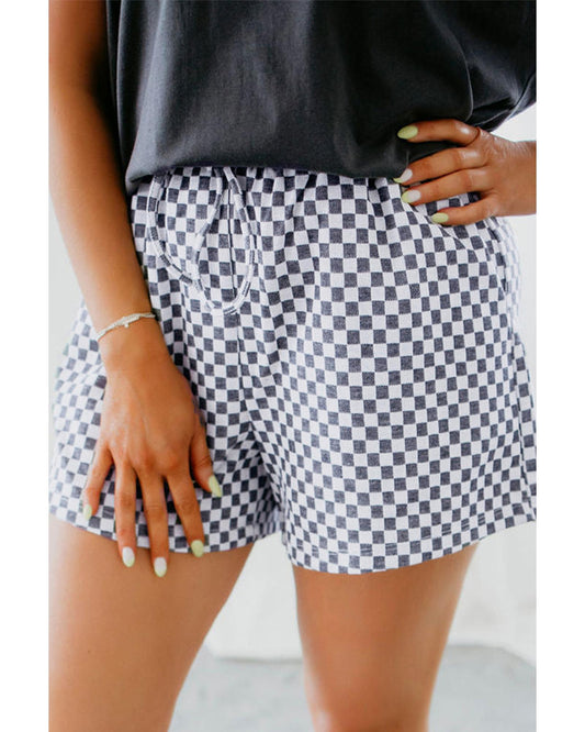 Plus Size Checkerboard Lace-Up High Waist Shorts