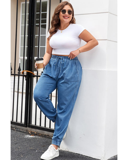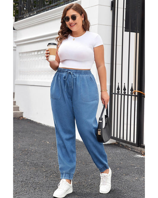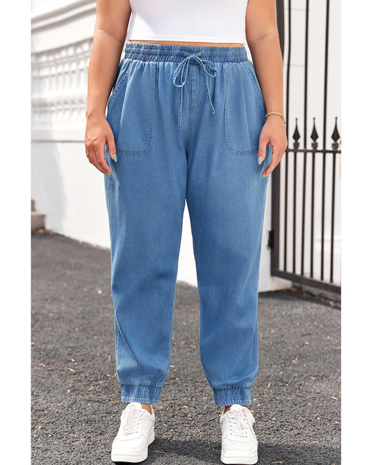 PLUS SIZE Drawstring Waist Pocketed Denim Joggers