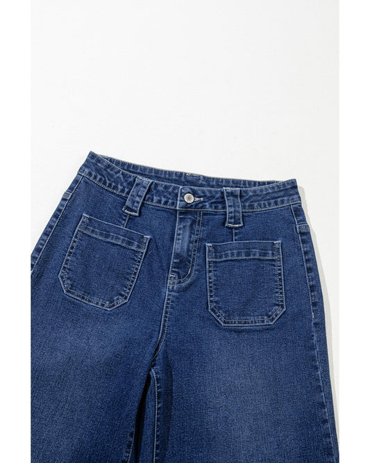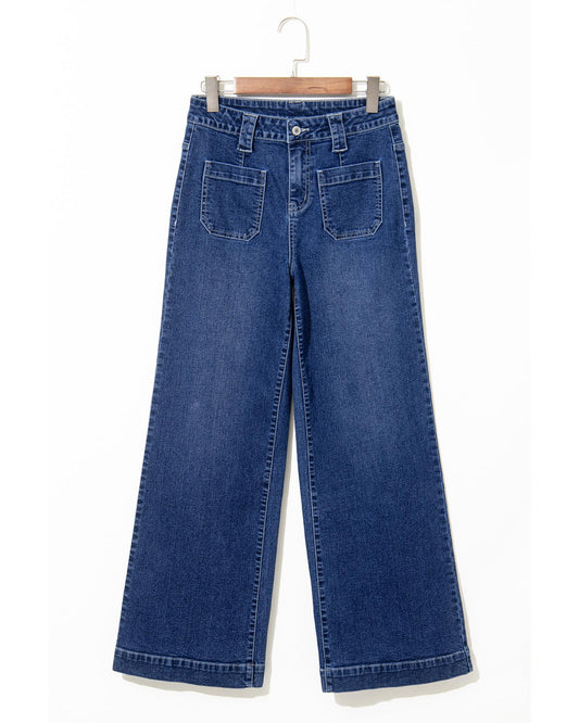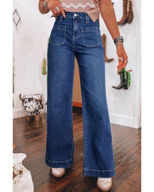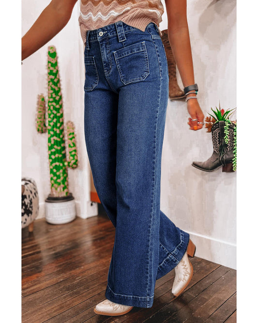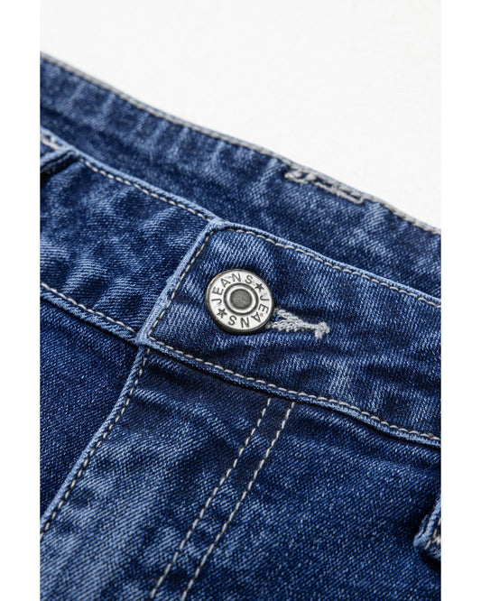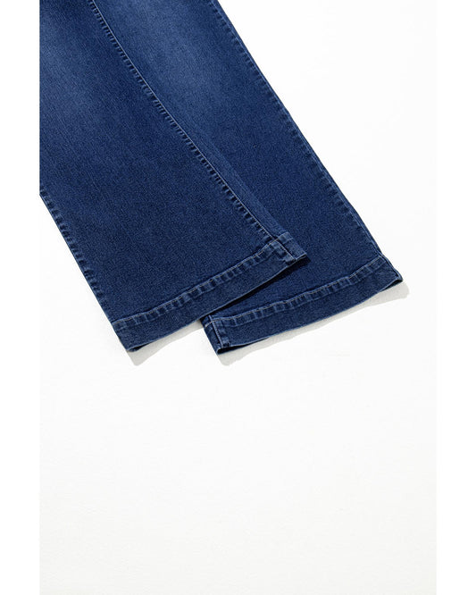 Mineral Wash Button Fly Waist Wide Leg Jeans