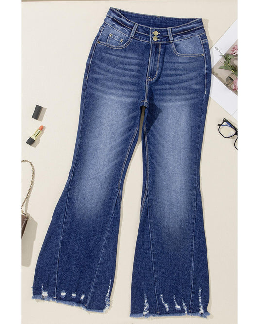 Sail Blue Distressed Raw Hem Flared Jeans