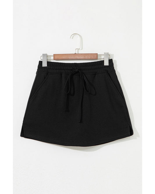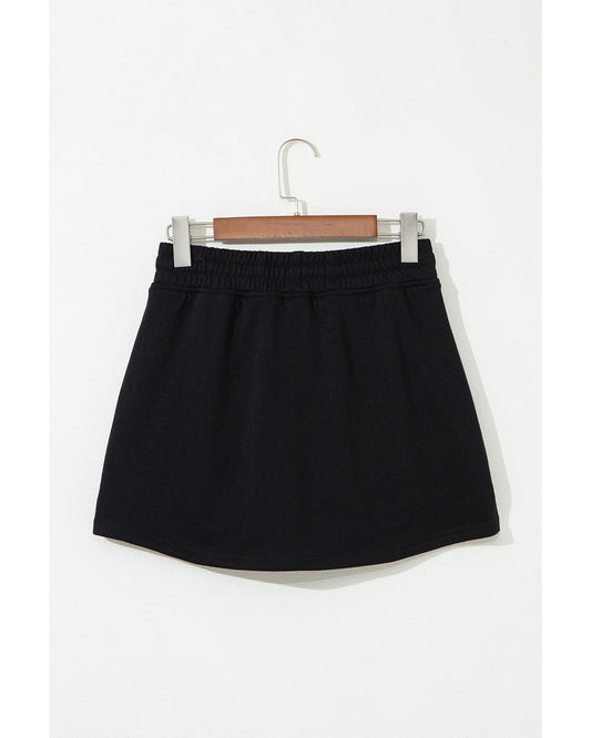 French Terry Drawstring Pocketed Mini Short-Skirt