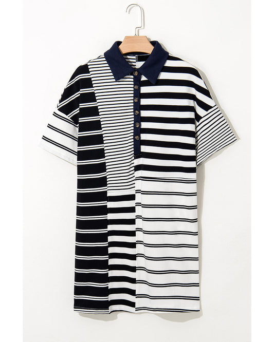 Black Stripe Half Placket Polo T Shirt Dress - L