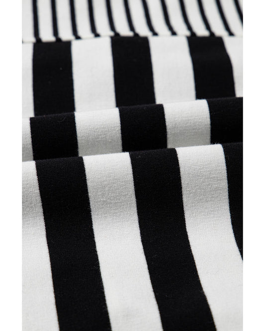 Black Striped Polka Dot Print Ruffled Hem V Neck Mini Dress - S