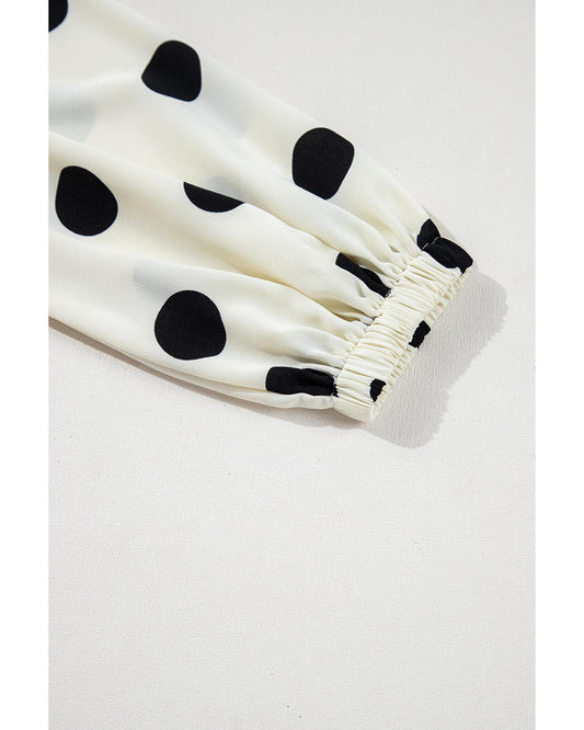 Beige Polka Dot Printed Surplice V Neck Puff Sleeve Mini Dress - L