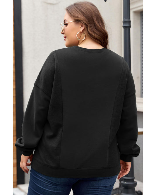 PLUS SIZE Loose Patchwork Crewneck Sweatshirt