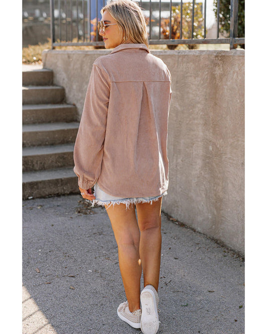 Coffee Striped Long Sleeve Round Neck Loose Top