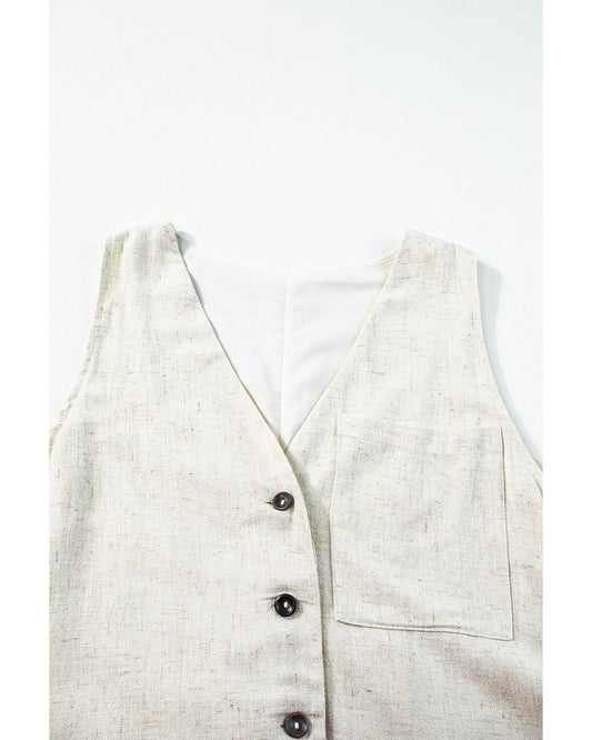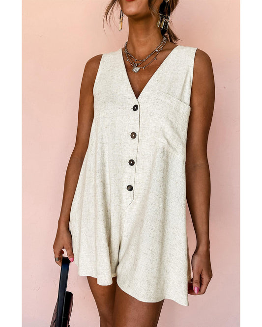 Sleeveless V-Neck Buttoned Front Romper