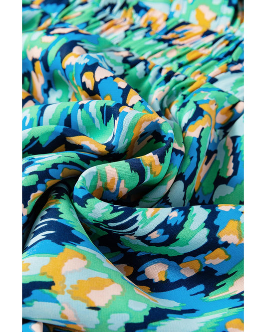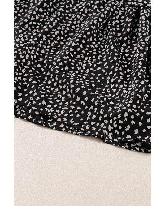 Puff Sleeve V Neck High Waist Romper with Abstract Print