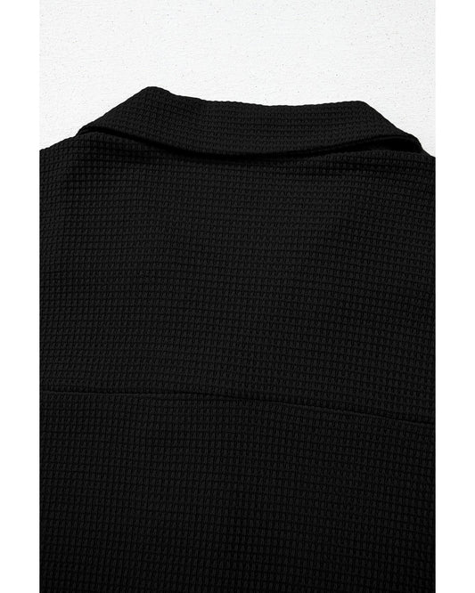 Solid Colour Textured Buttoned Shirt and Casual Pants Set