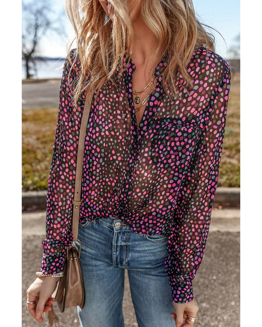 Grape Wine Polka Dot Printed Buttoned Shirt