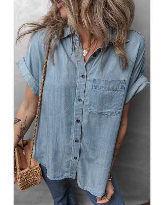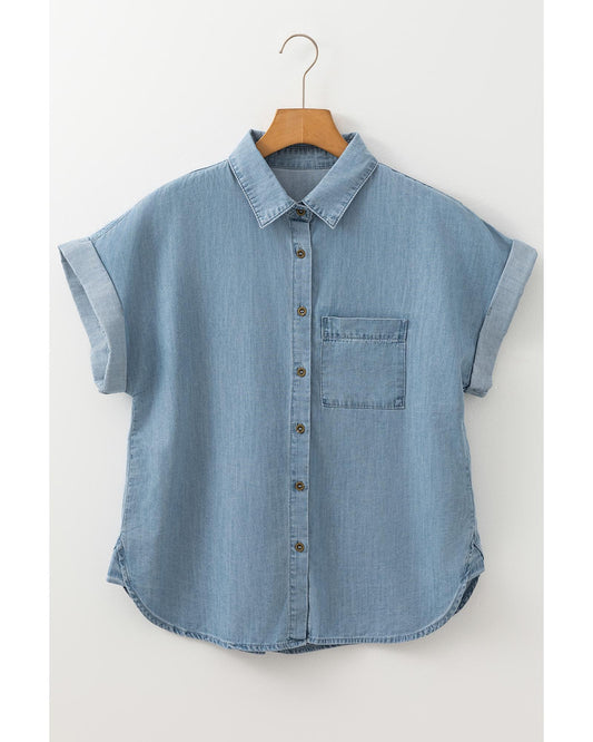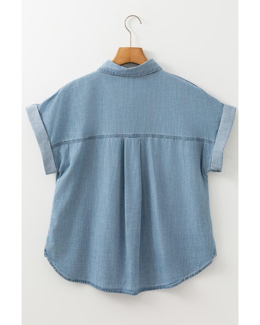 Dusk Blue Denim Pinup Folded Cap Sleeve Shirt