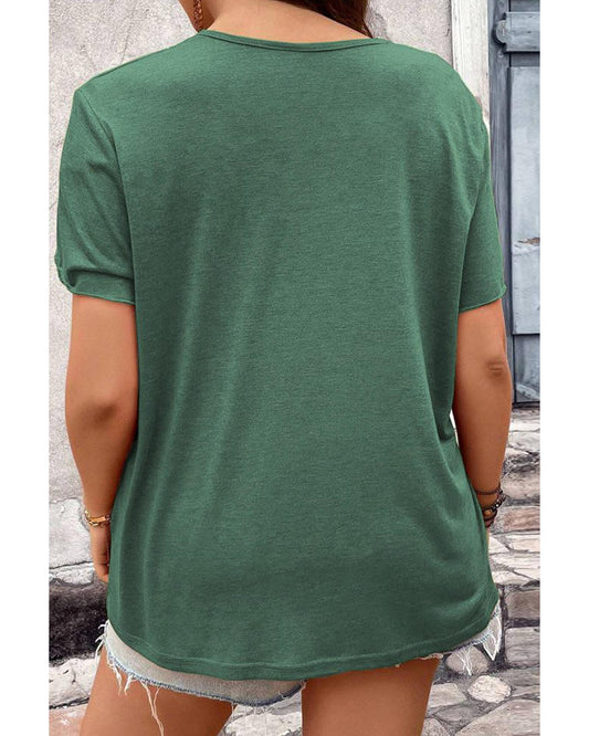 PLUS SIZE Floral Ruched Split Neck Blouse