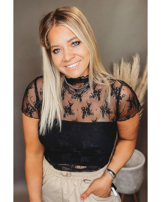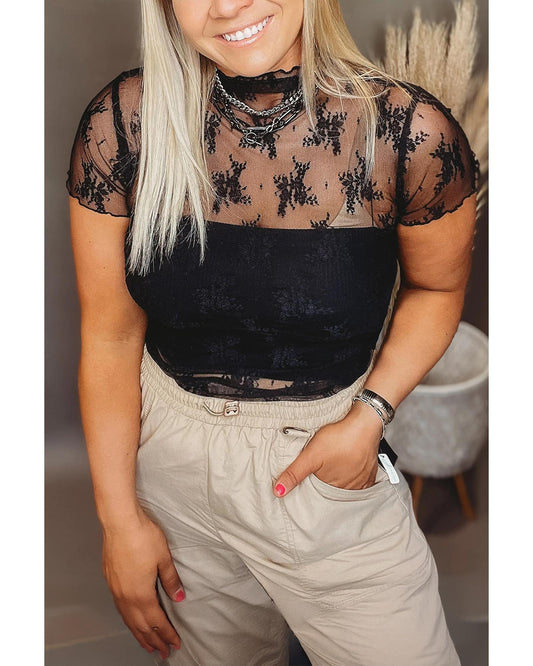 PLUS SIZE Sheer Lace Mesh Short Sleeve Top