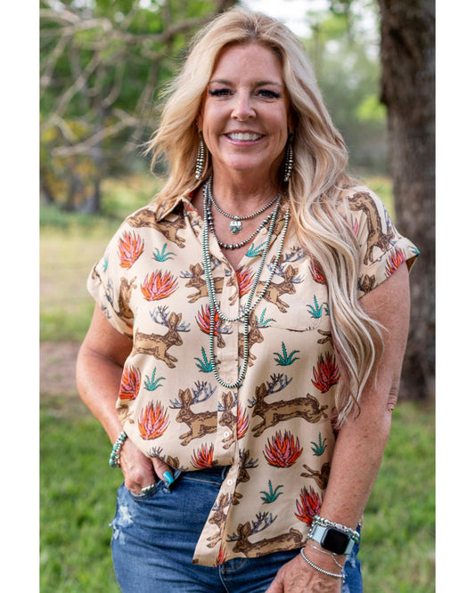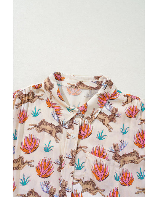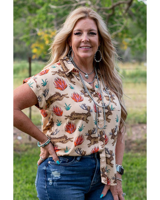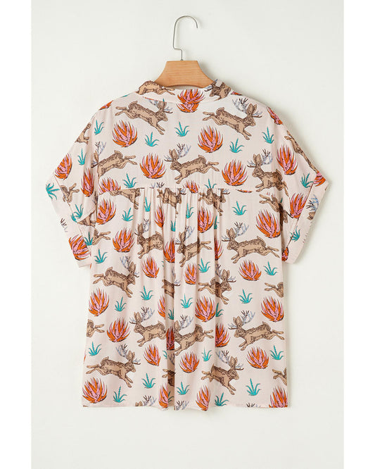 PLUS SIZE Printed Buttoned Short Sleeve Blouse