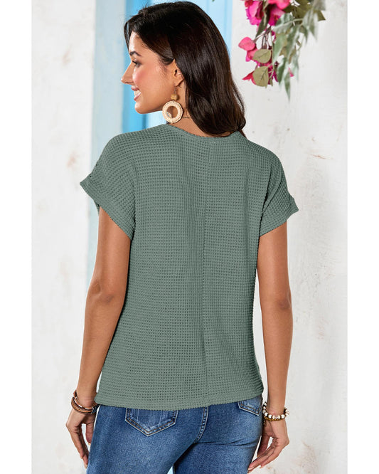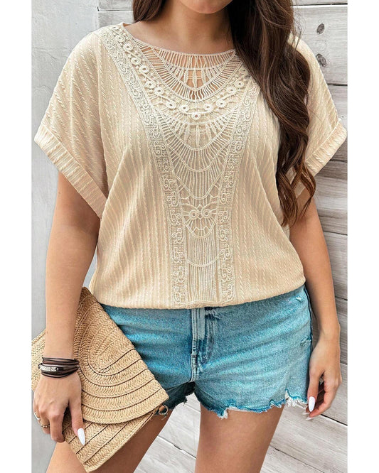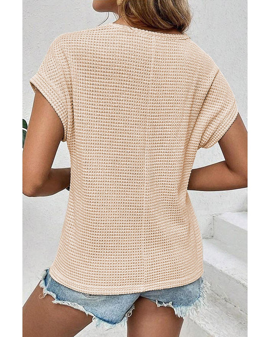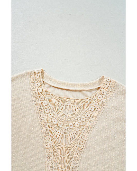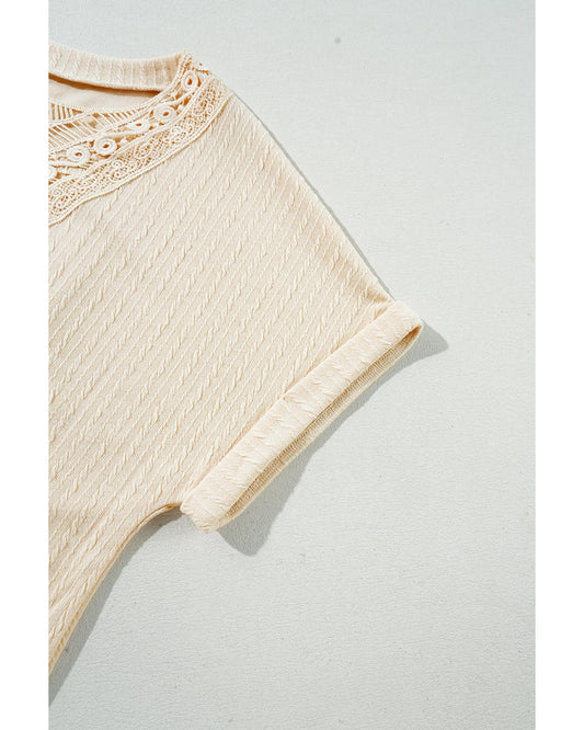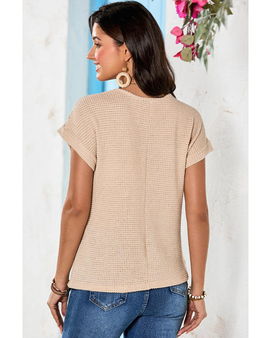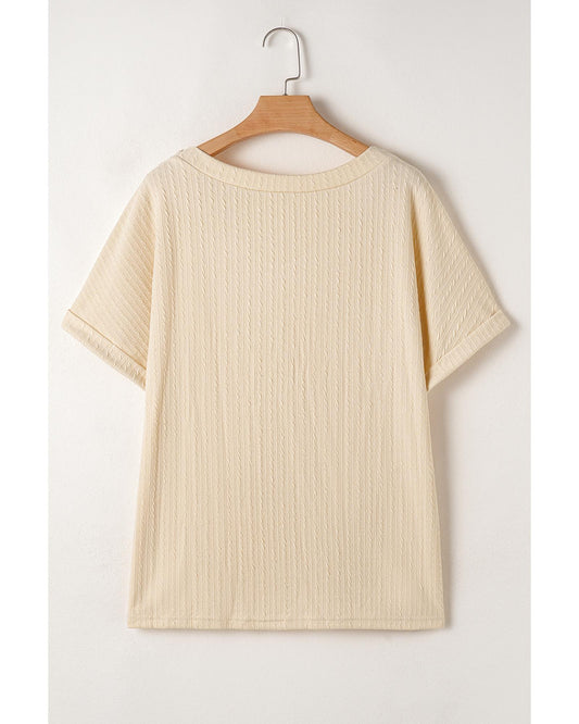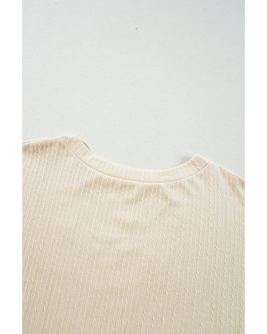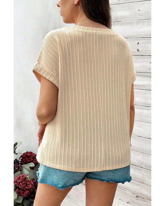 PLUS SIZE Textured Cuffed Top with Knit Detail