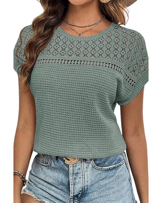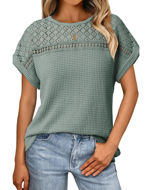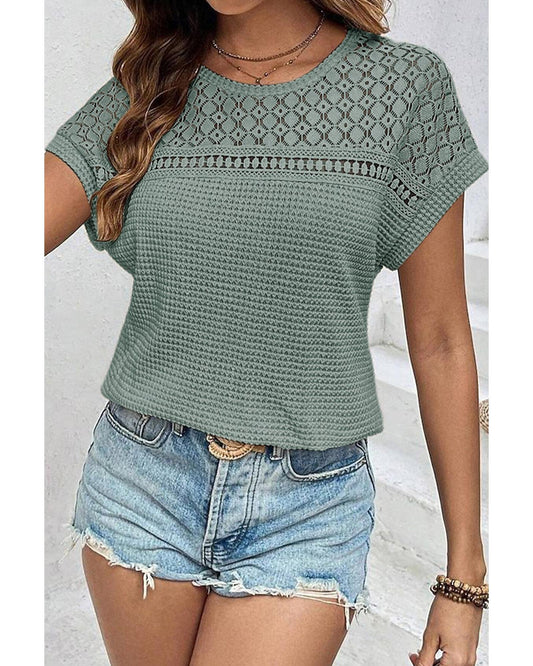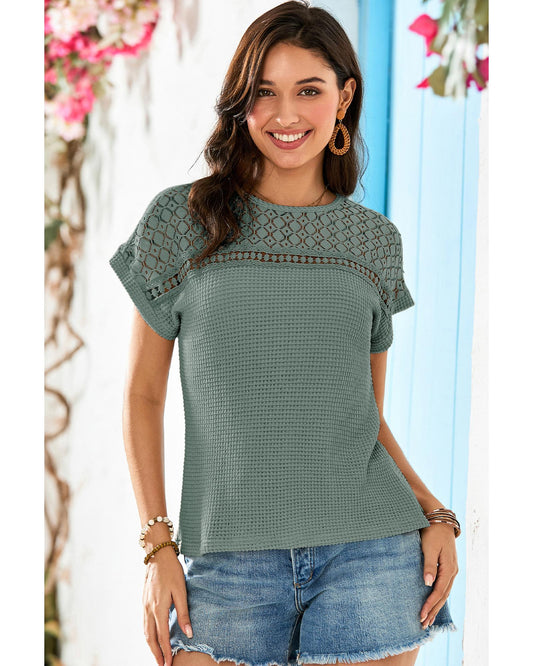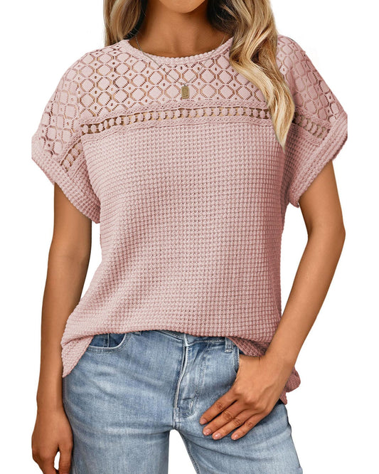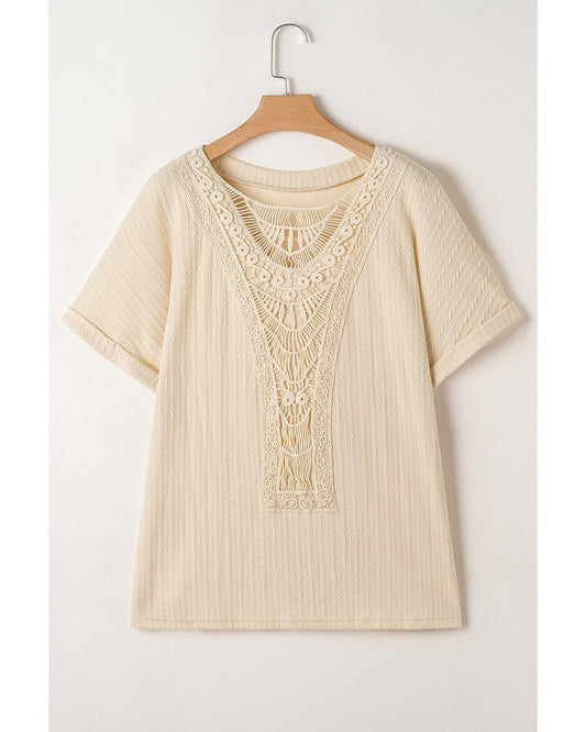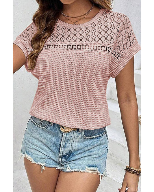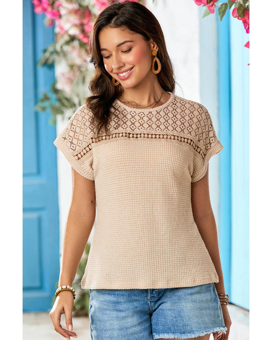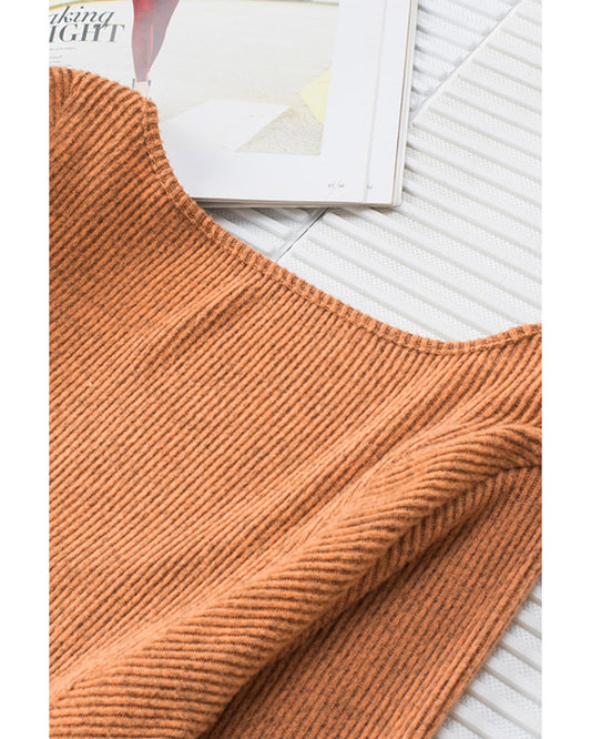 PLUS SIZE Textured Cuffed Top with Knit Detail