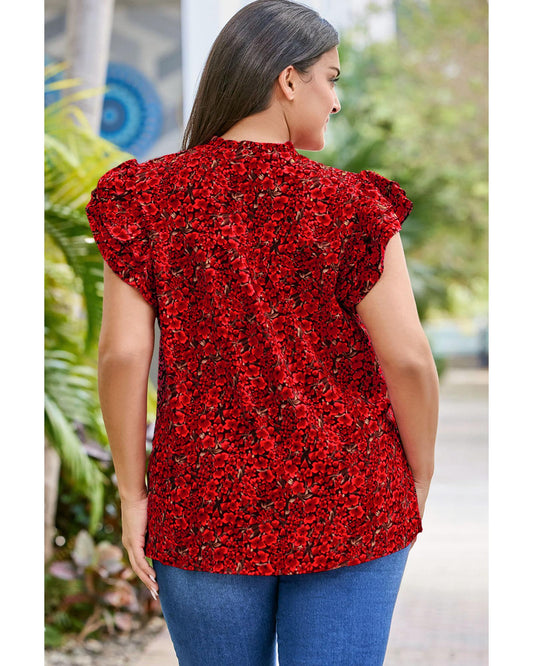 PLUS SIZE Rose Floral Ruffle Sleeve Top