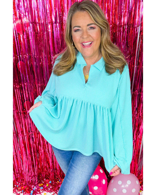 PLUS SIZE Balloon Sleeve Collar Babydoll Top