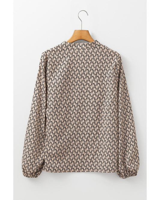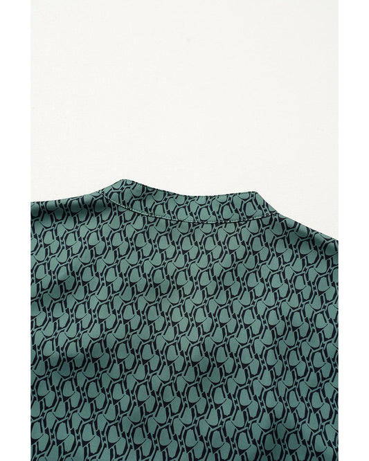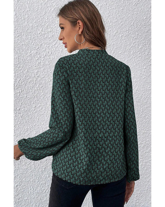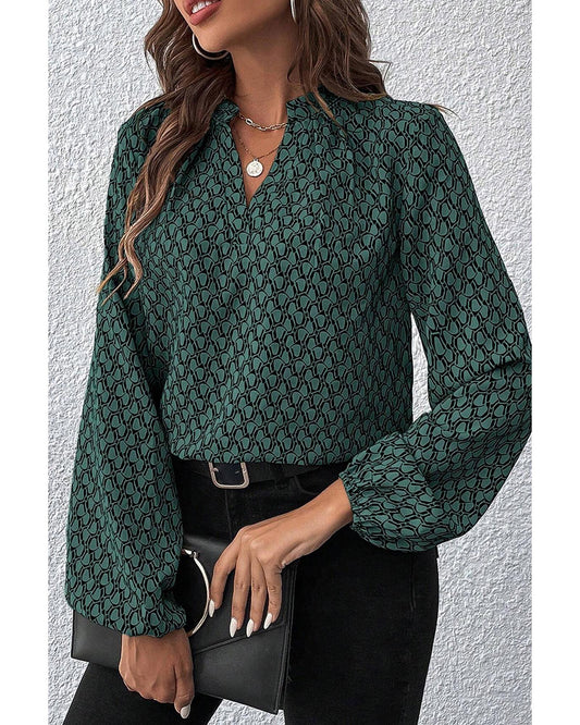 Geometric Print Notched Neck Puff Sleeve Blouse