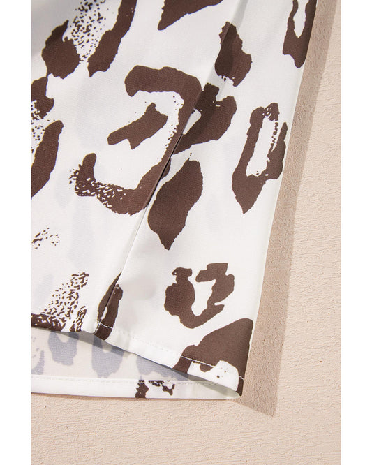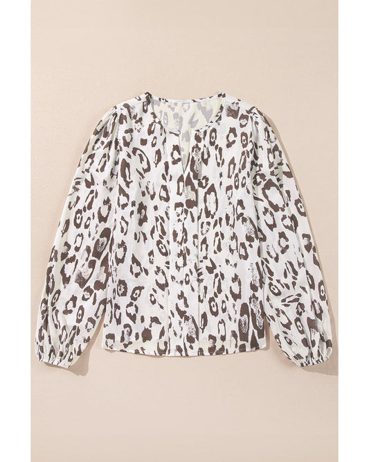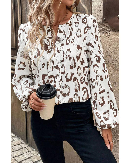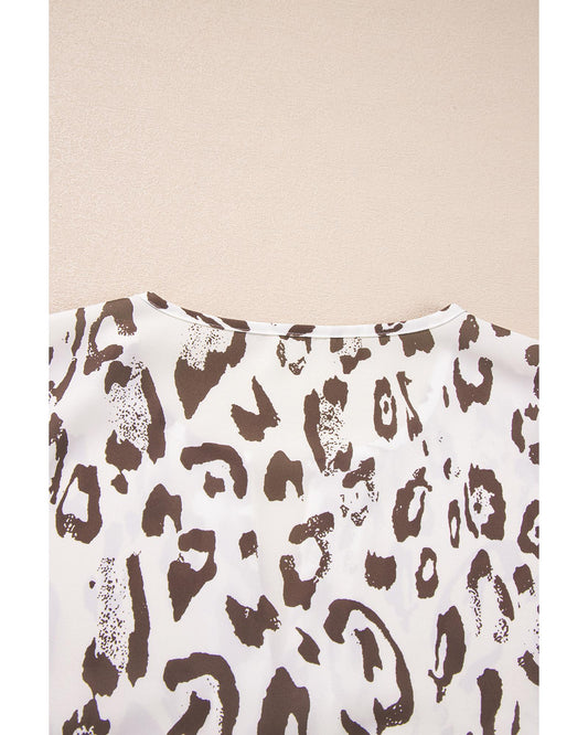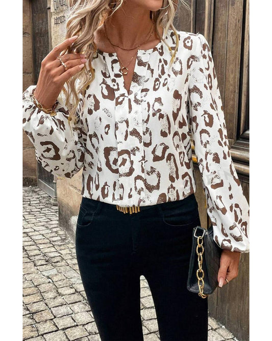 Khaki Leopard Print Split Neck Blouse