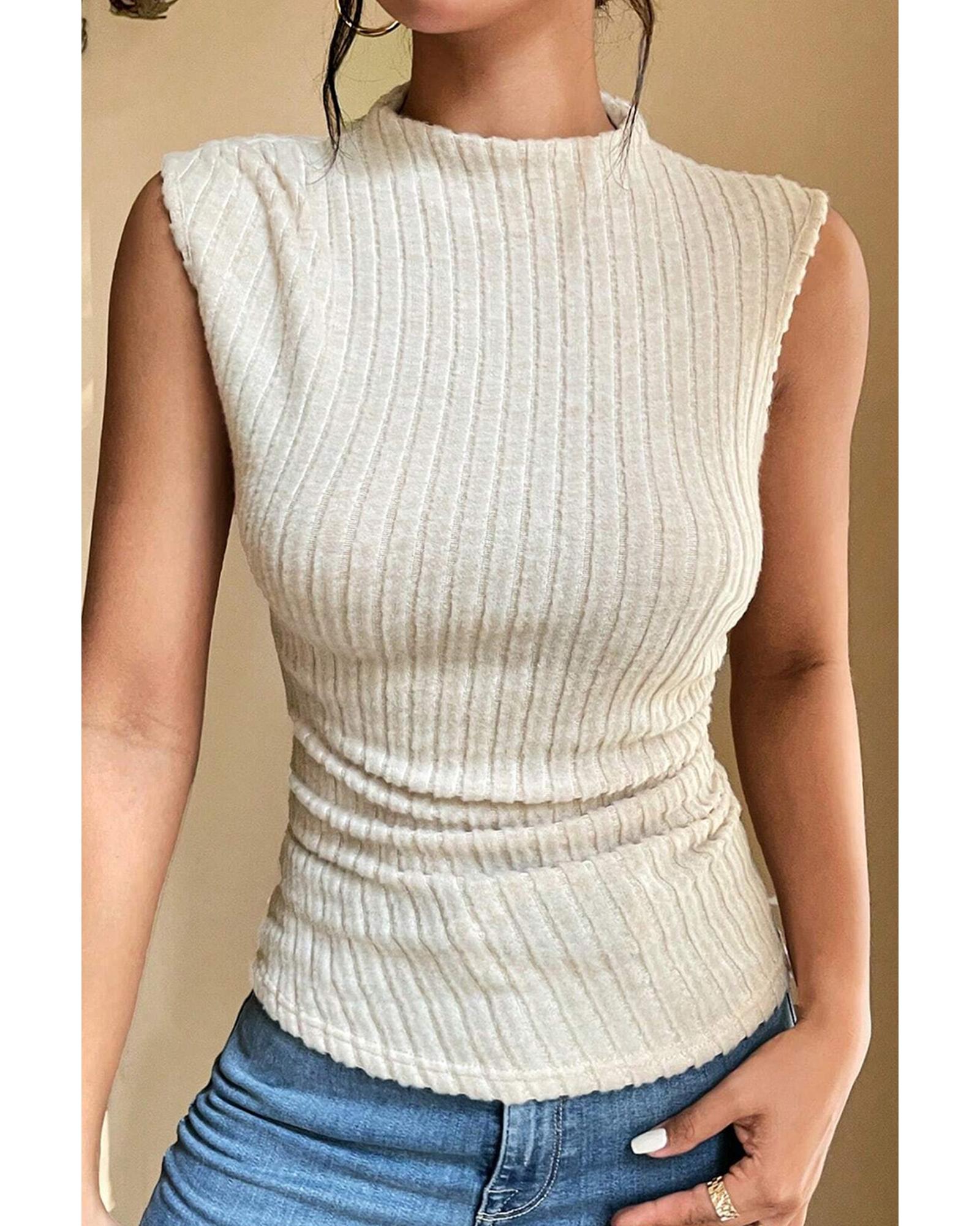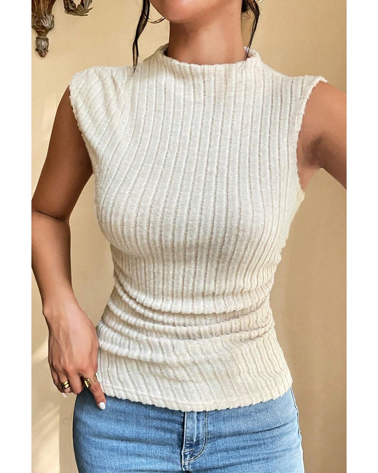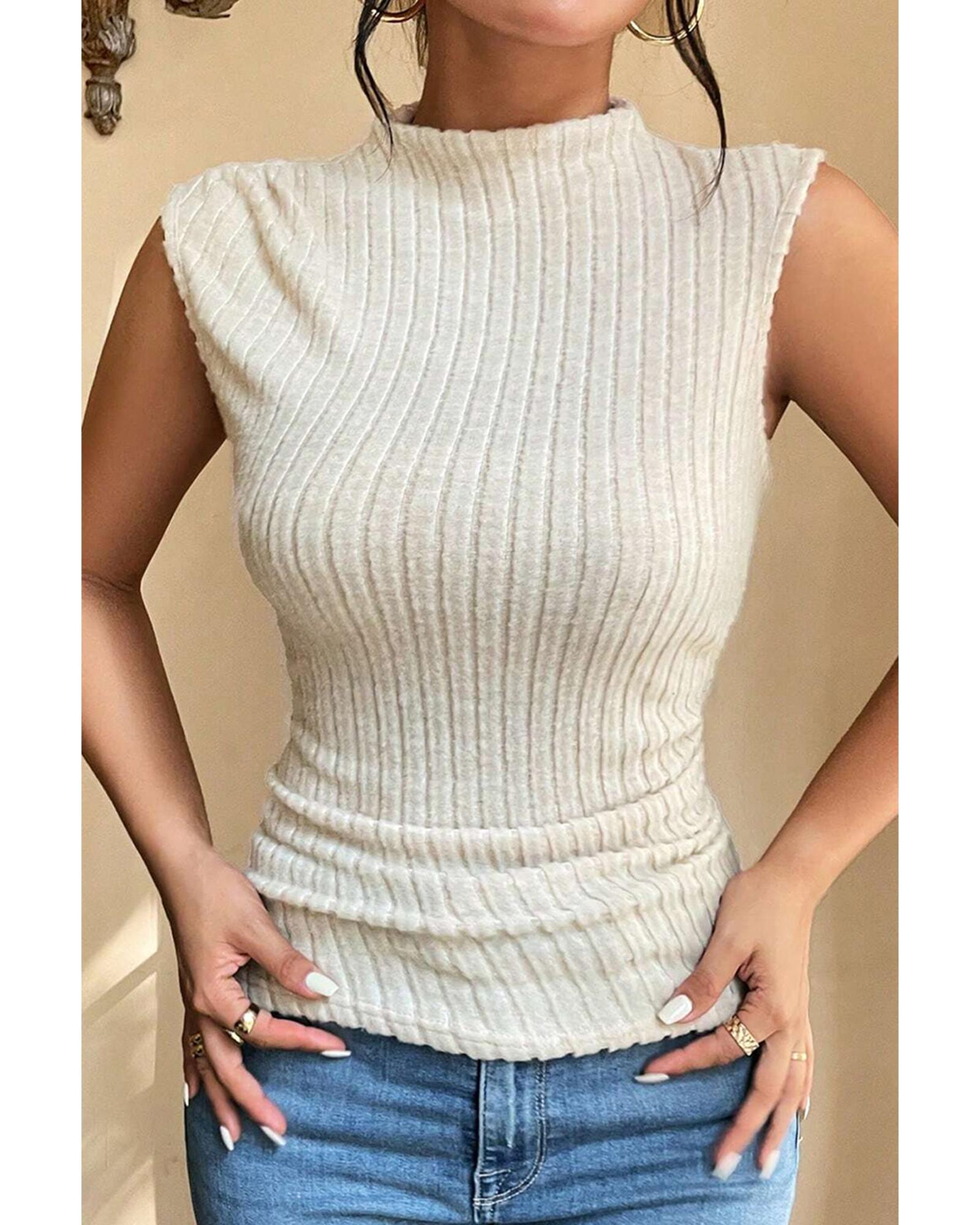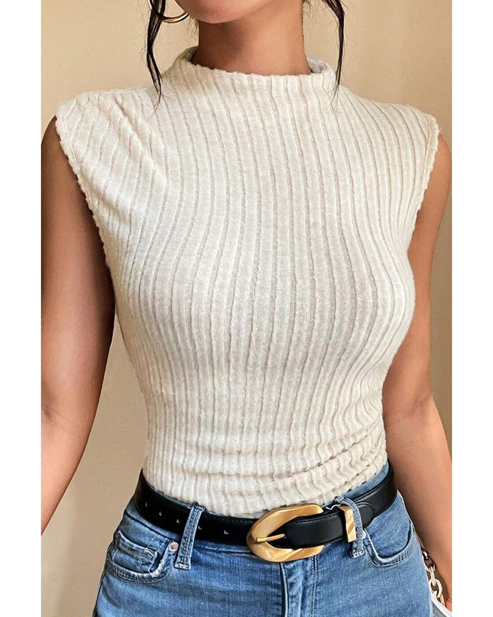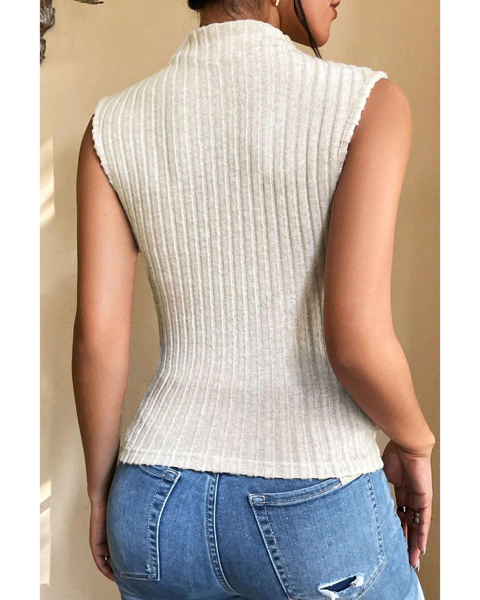Designed as a wardrobe essential, this ribbed knit mock neck tank combines breathable stretch with a flattering silhouette for effortless styling. Wear it solo for a minimalist look or layer under blazers, cardigans, and jackets for polished, everyday outfits. The durable fabric blend maintains shape, drapes smoothly, and offers comfortable movement—perfect for casual, office, or evening wear.