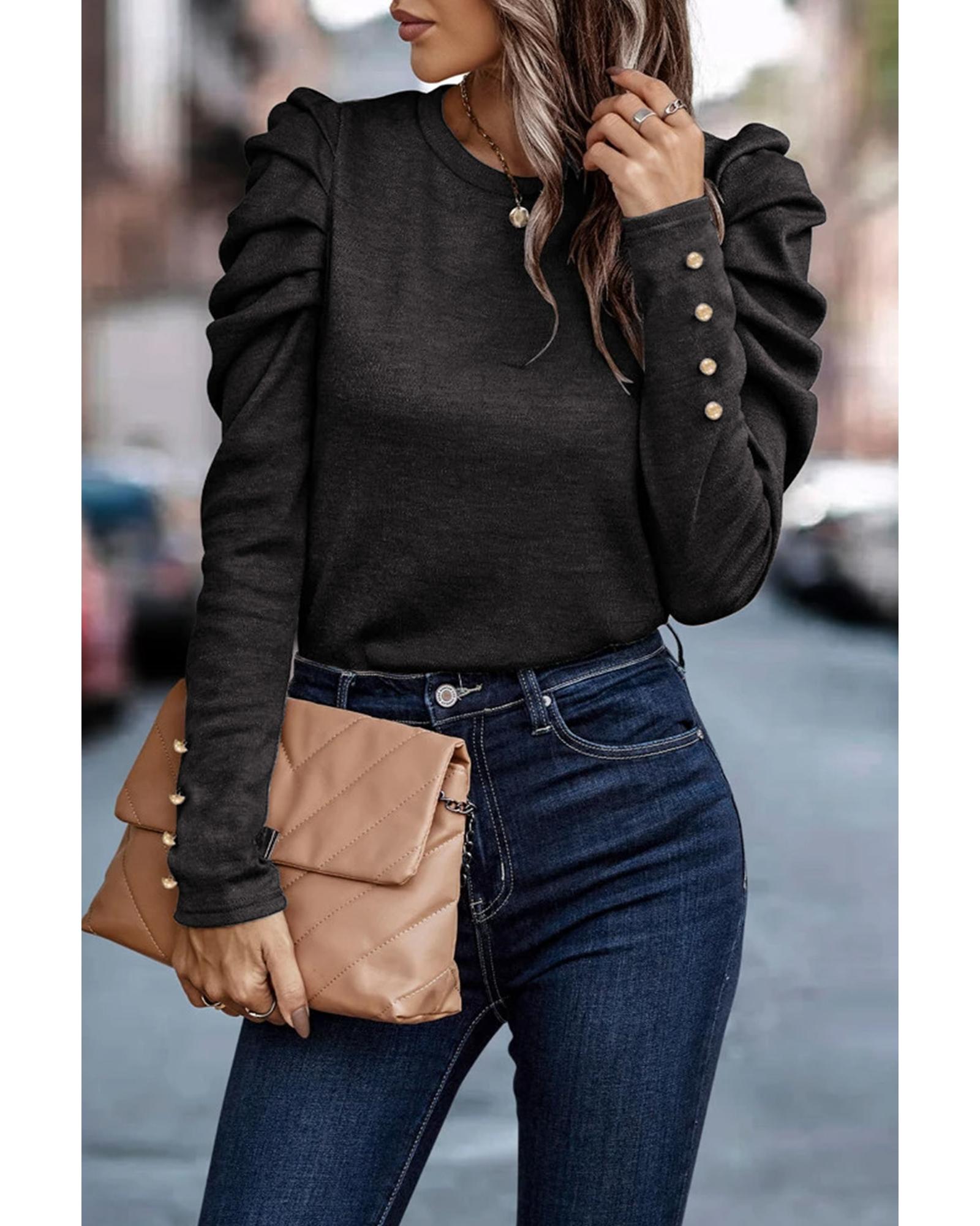 Azura Exchange Buttoned Puff Long Sleeve Sheath Top - XL