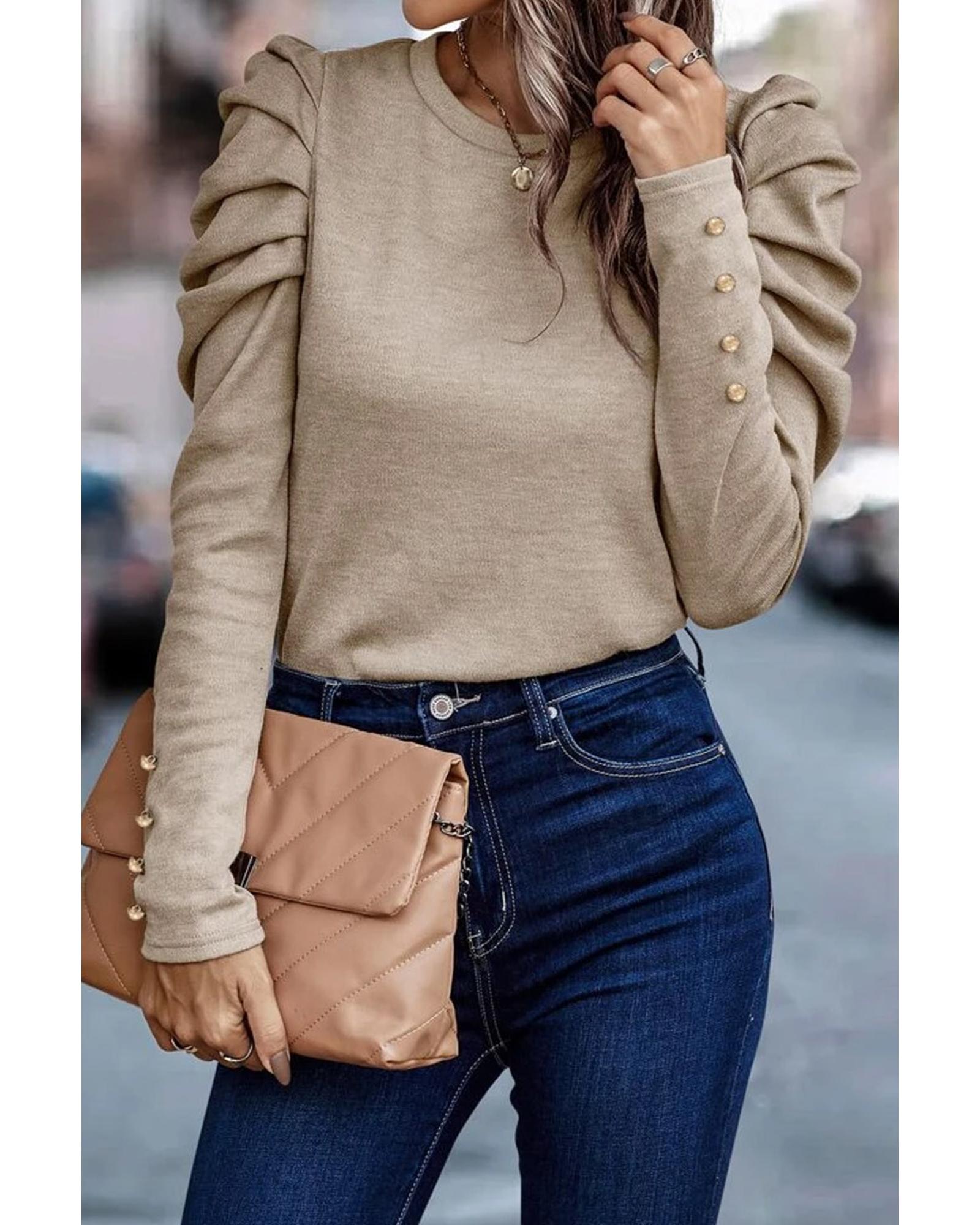 Azura Exchange Buttoned Puff Long Sleeve Sheath Top - XL
