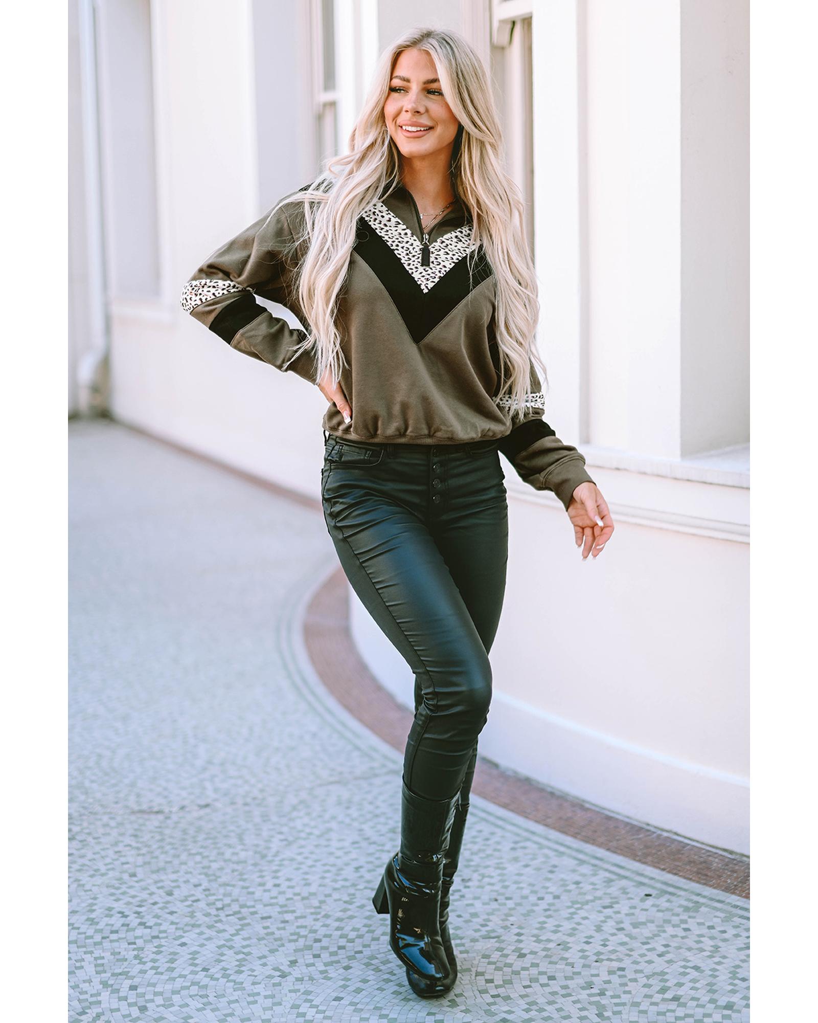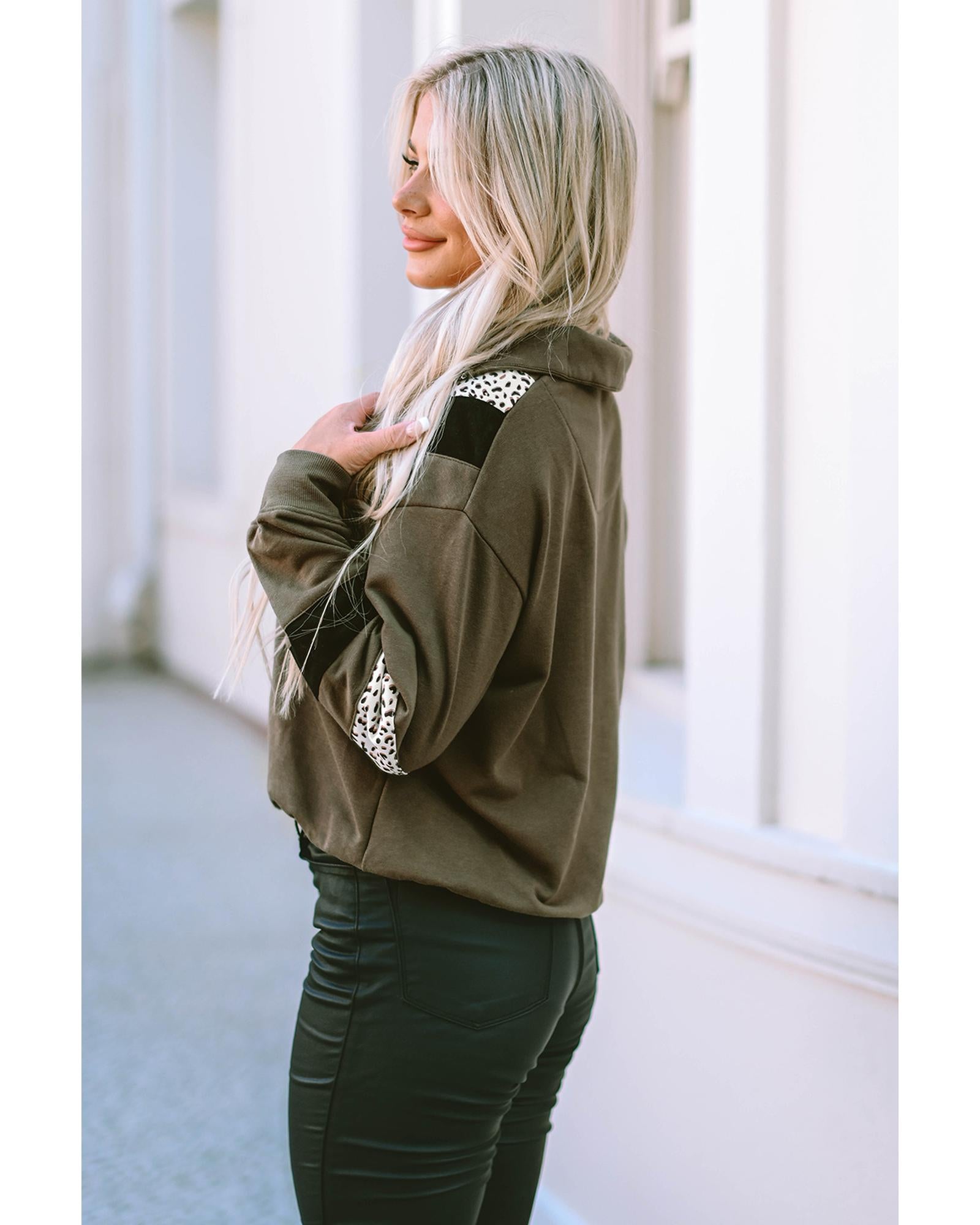 Azura Exchange Leopard Contrast Splicing Quarter Zip Sweatshirt - L