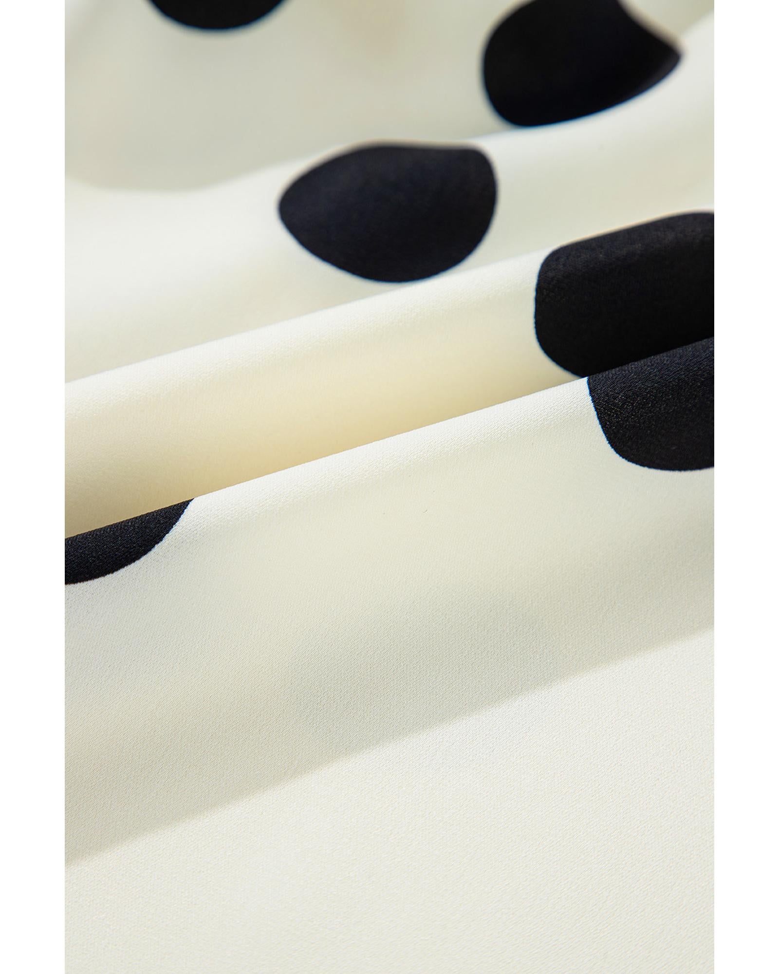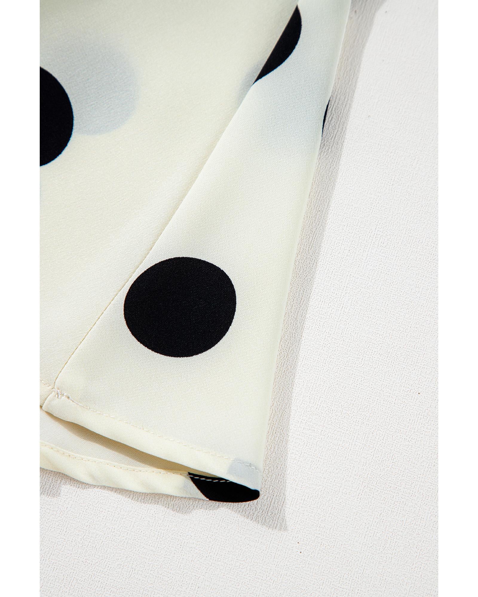 Beige Polka Dot Printed Surplice V Neck Puff Sleeve Mini Dress - L