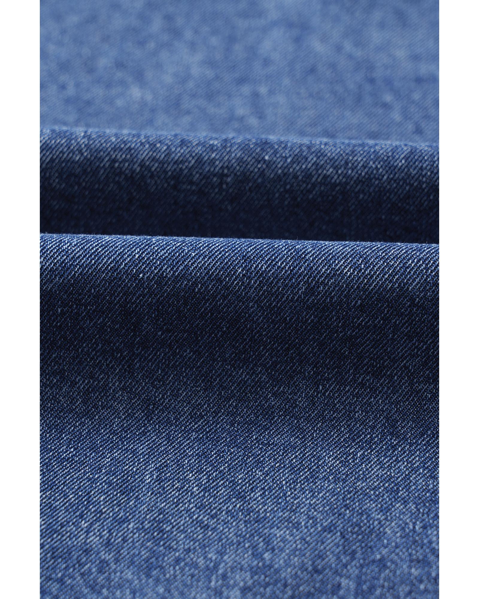 Blue Short Sleeve Collared Patched Pocket Denim Mini Dress