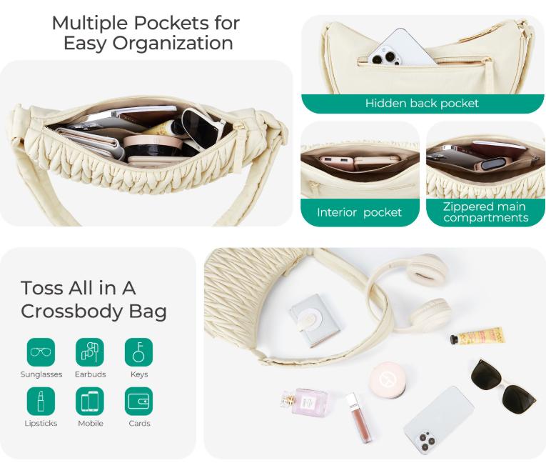 1 x Pleated Crescent Sling Bag with Adjustable Strap