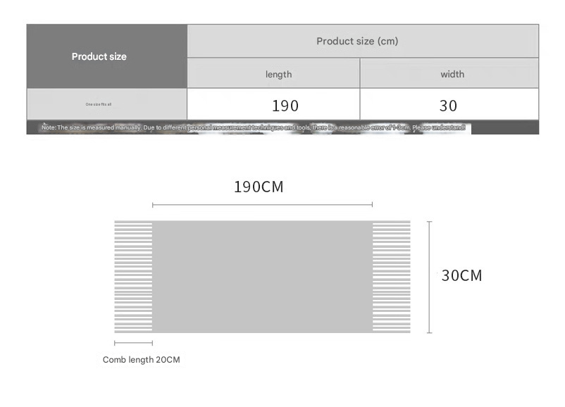 Generous Dimensions: Measuring approximately 190cm x 30cm (excluding tassels), it offers versatile styling options—wear it looped, draped, or as a chic shoulder wrap to suit any outfit.