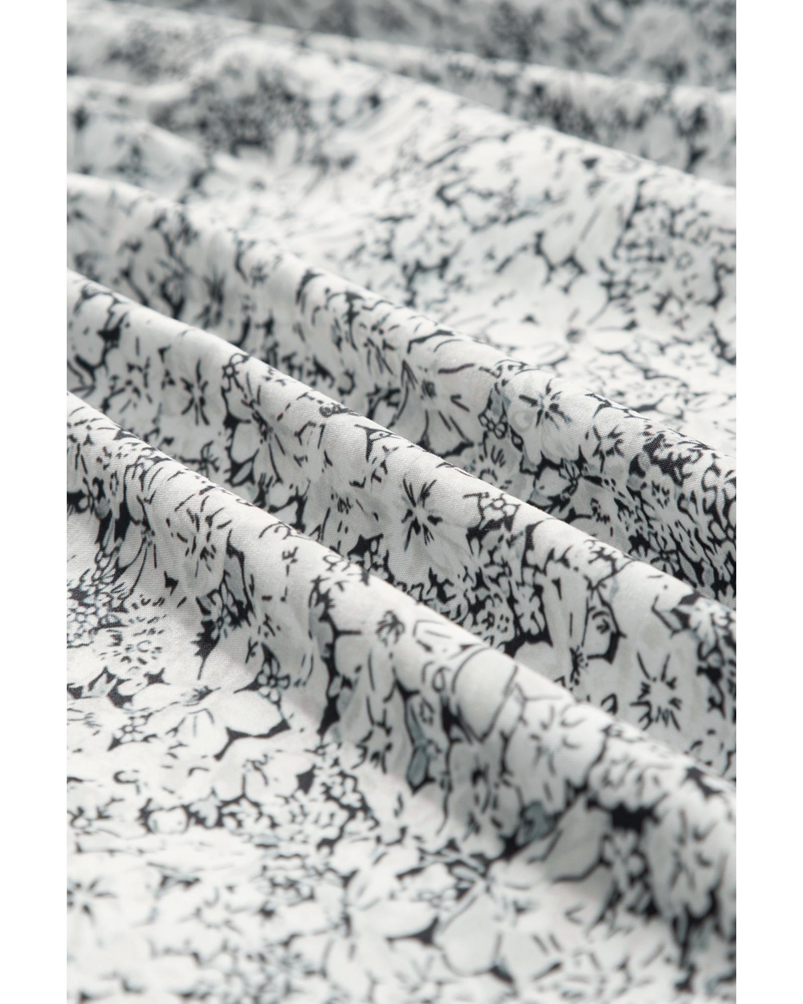Gray Floral Print Open Back Balloon Sleeve Square Neck Mini Dress - L