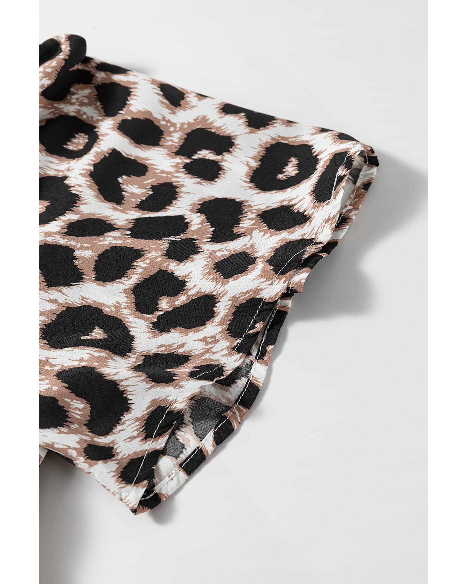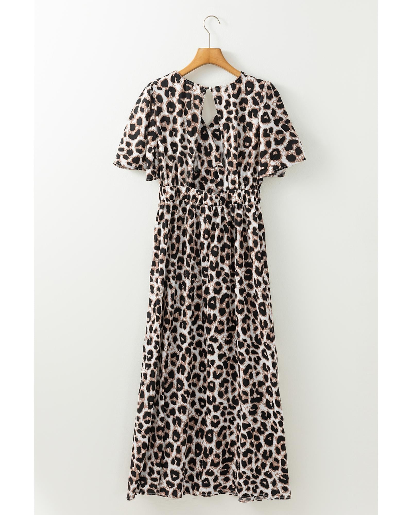 Khaki Leopard V Neck Cinched High Waist Open Back Maxi Dress - M