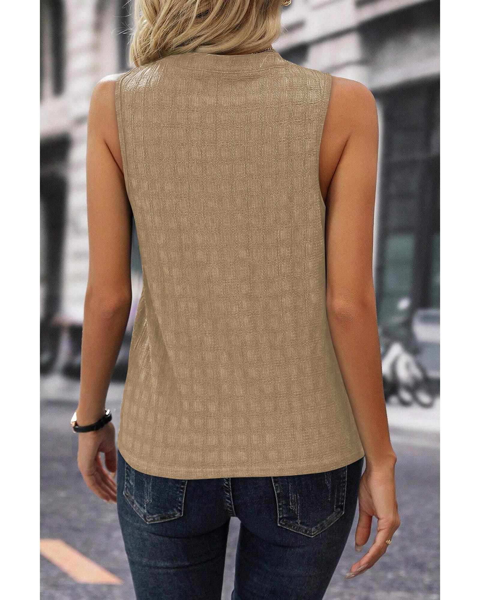 Lattice Textured Split Neck Tank Top