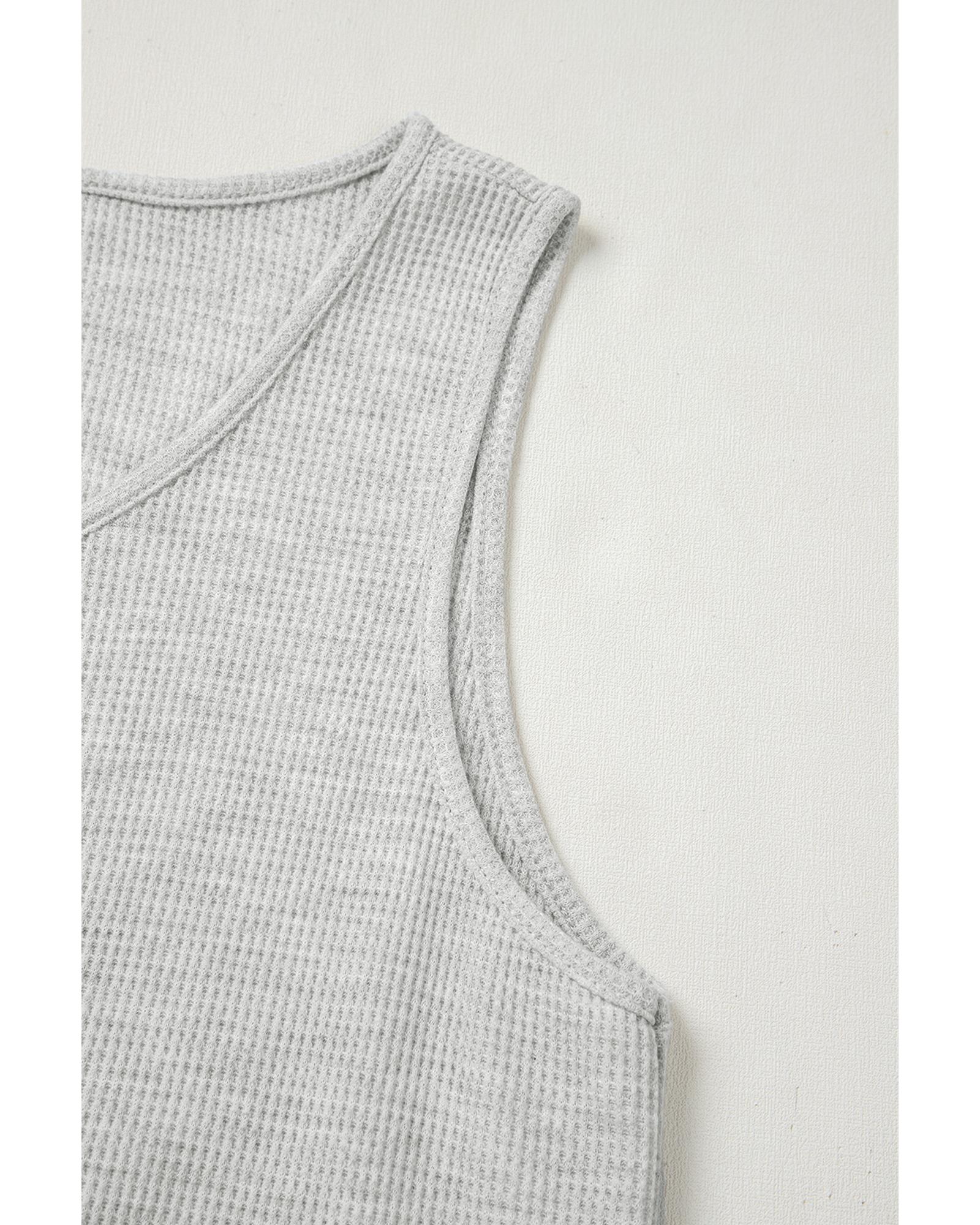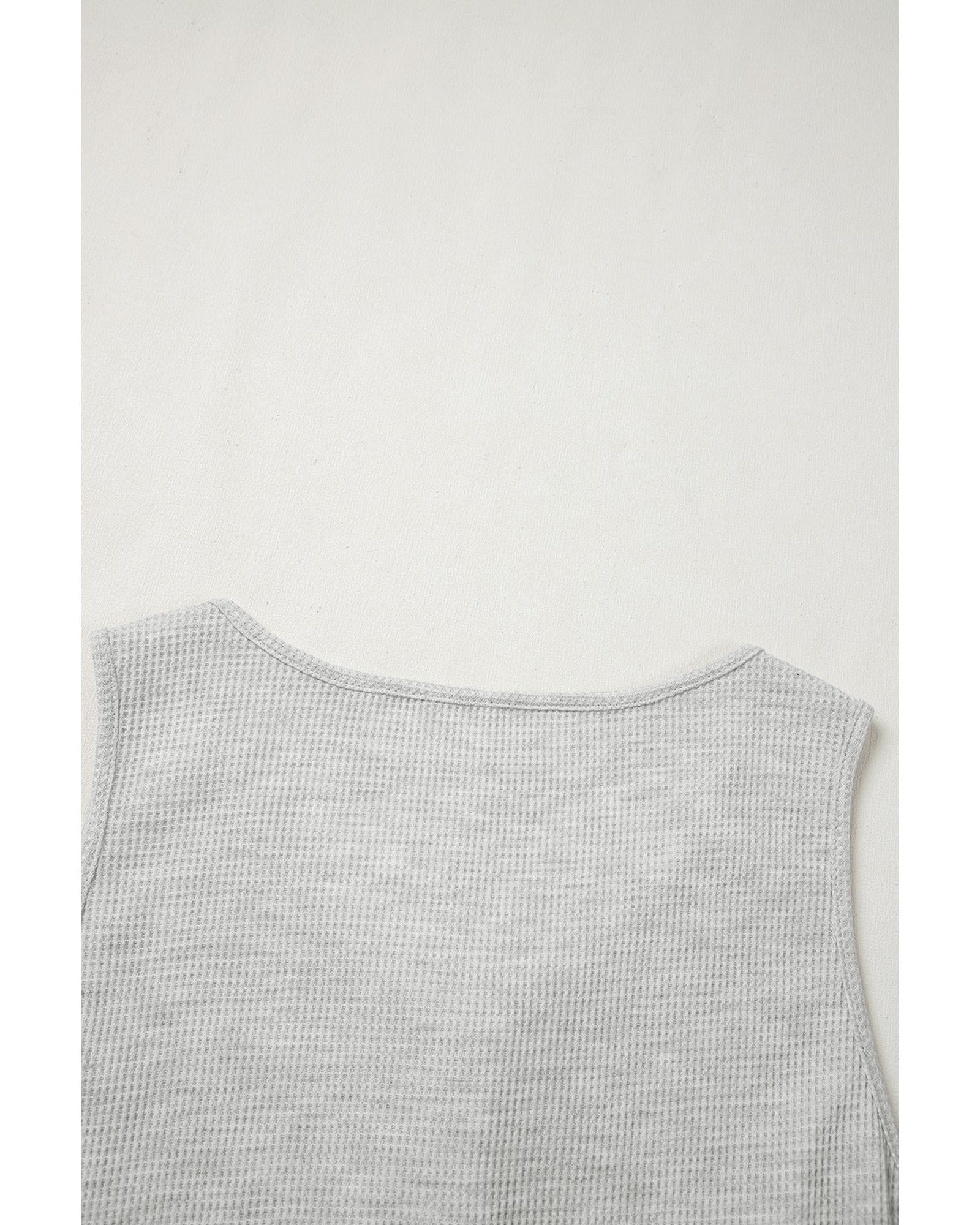 Light Grey Waffle Knit Buttoned Front Drawstring Waist Romper