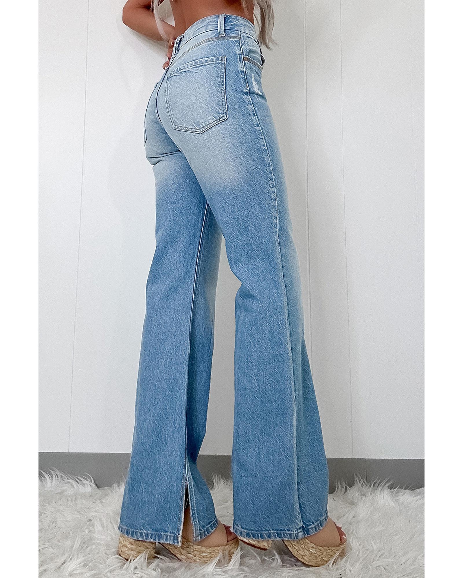 Designed for everyday style and comfort, these high-rise straight jeans combine a clean silhouette with a contemporary slit at the hem for subtle edge. The stretchy denim composition gives reliable movement and shape retention while the light wash delivers a timeless, lived-in feel. Whether dressed up with heeled boots or kept casual with sneakers and a cozy sweater, they offer versatile wear throughout the season. Follow the sizing guidance above and consult the size chart to ensure the ideal fit.