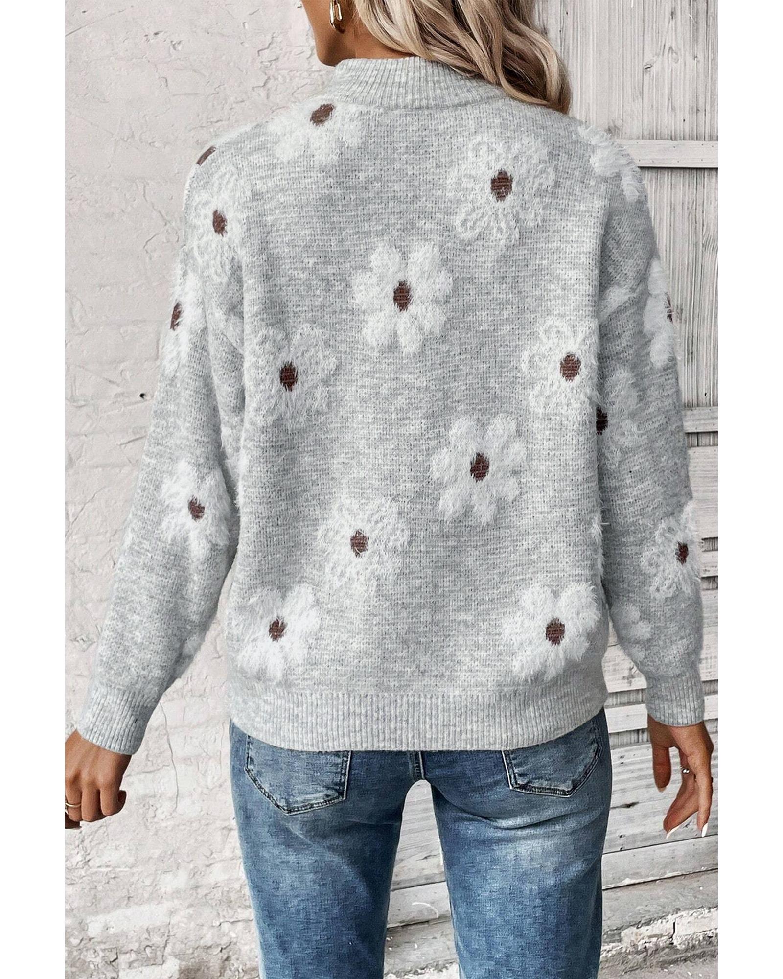 PLUS SIZE Embroidered Floral Half Zip Sweater