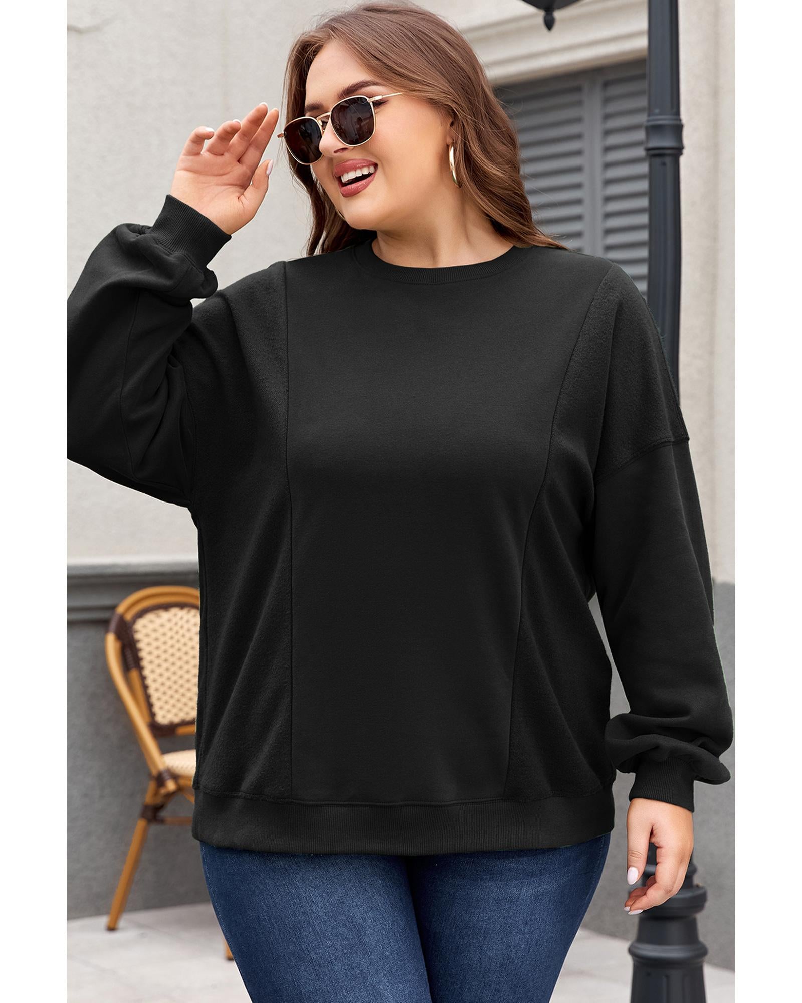 PLUS SIZE Loose Patchwork Crewneck Sweatshirt