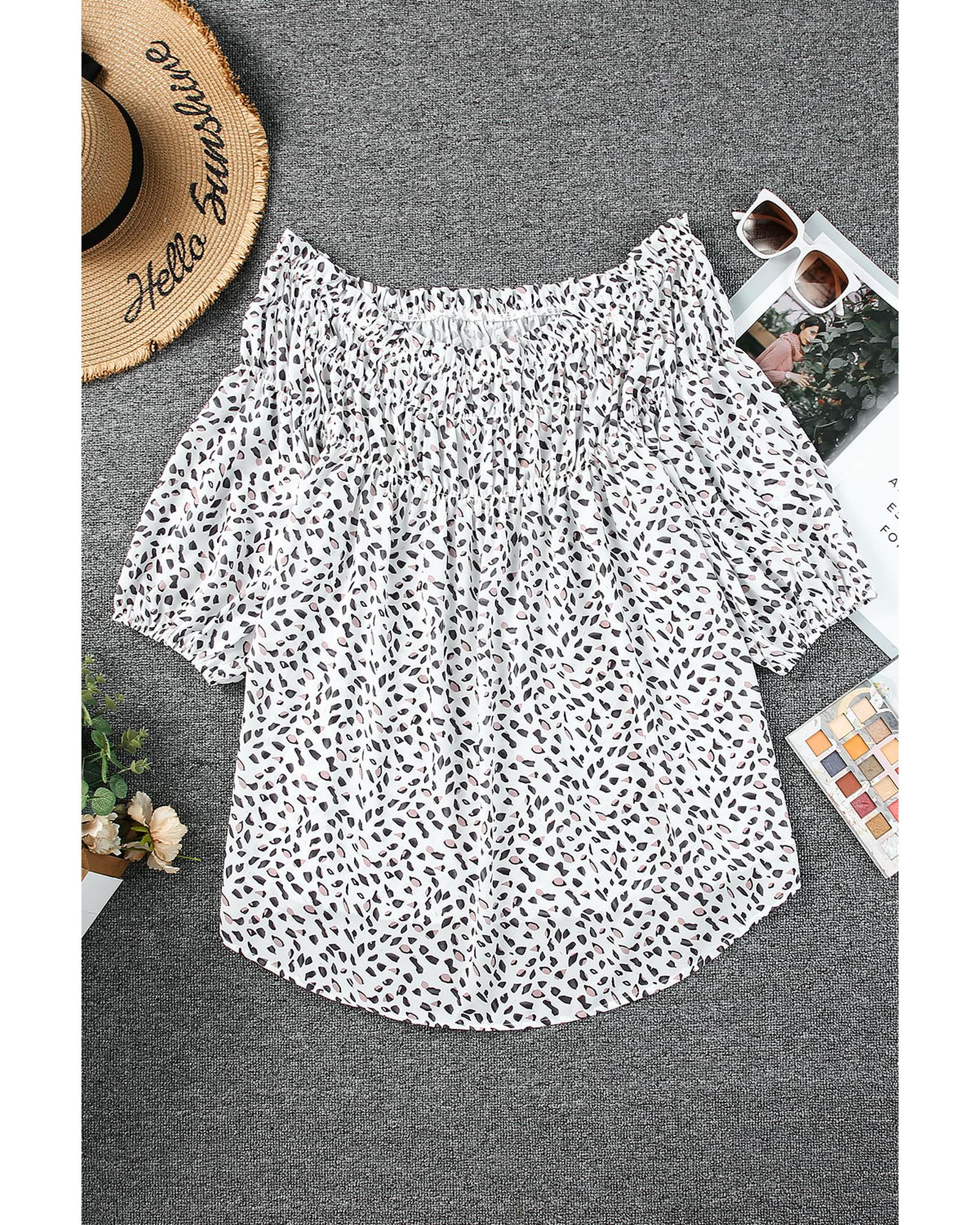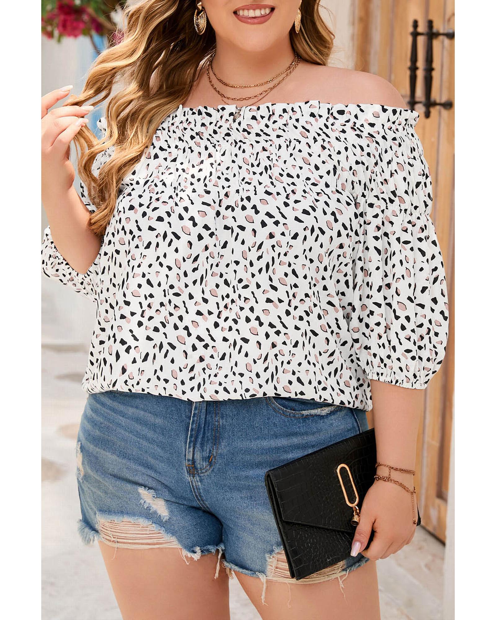 This lightweight, cheetah-spotted off-shoulder blouse blends bold print with a relaxed, flowy silhouette—designed to flatter and move with you. The easy, versatile style transitions from casual daytime outfits to dressed-up evenings; accessorize with statement jewelry and heels or keep it simple with denim and sandals. Crafted from 100% polyester for easy care and lasting color, it’s a fashionable plus-size staple that offers both comfort and confident style.
