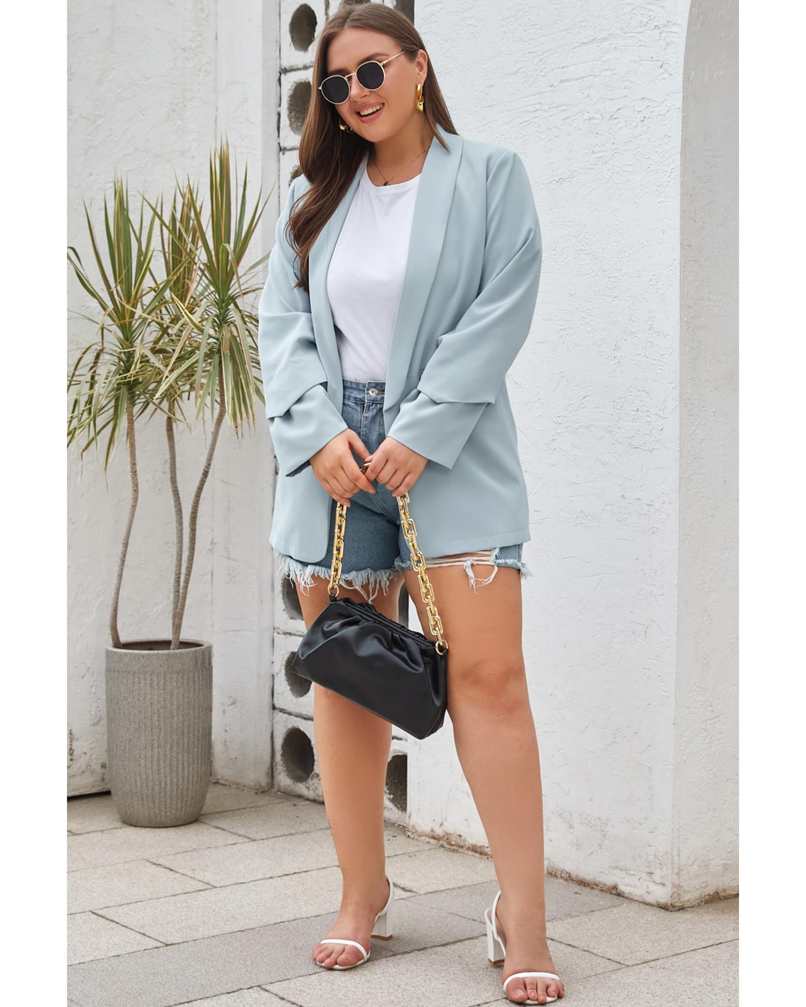 Collared neckline with an open front for easy layering. Features flap pockets and unique sleeves that add tailored interest. Flattering feminine silhouette with a straight hemline that works for both casual and polished looks. Designed to offer a confident, comfortable fit.