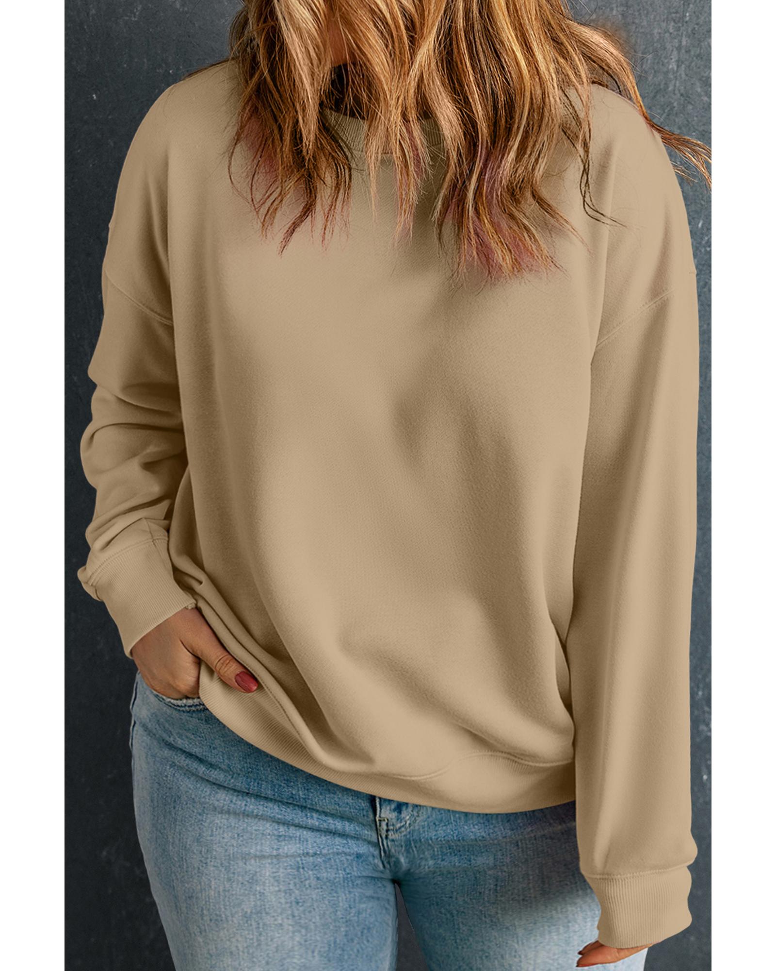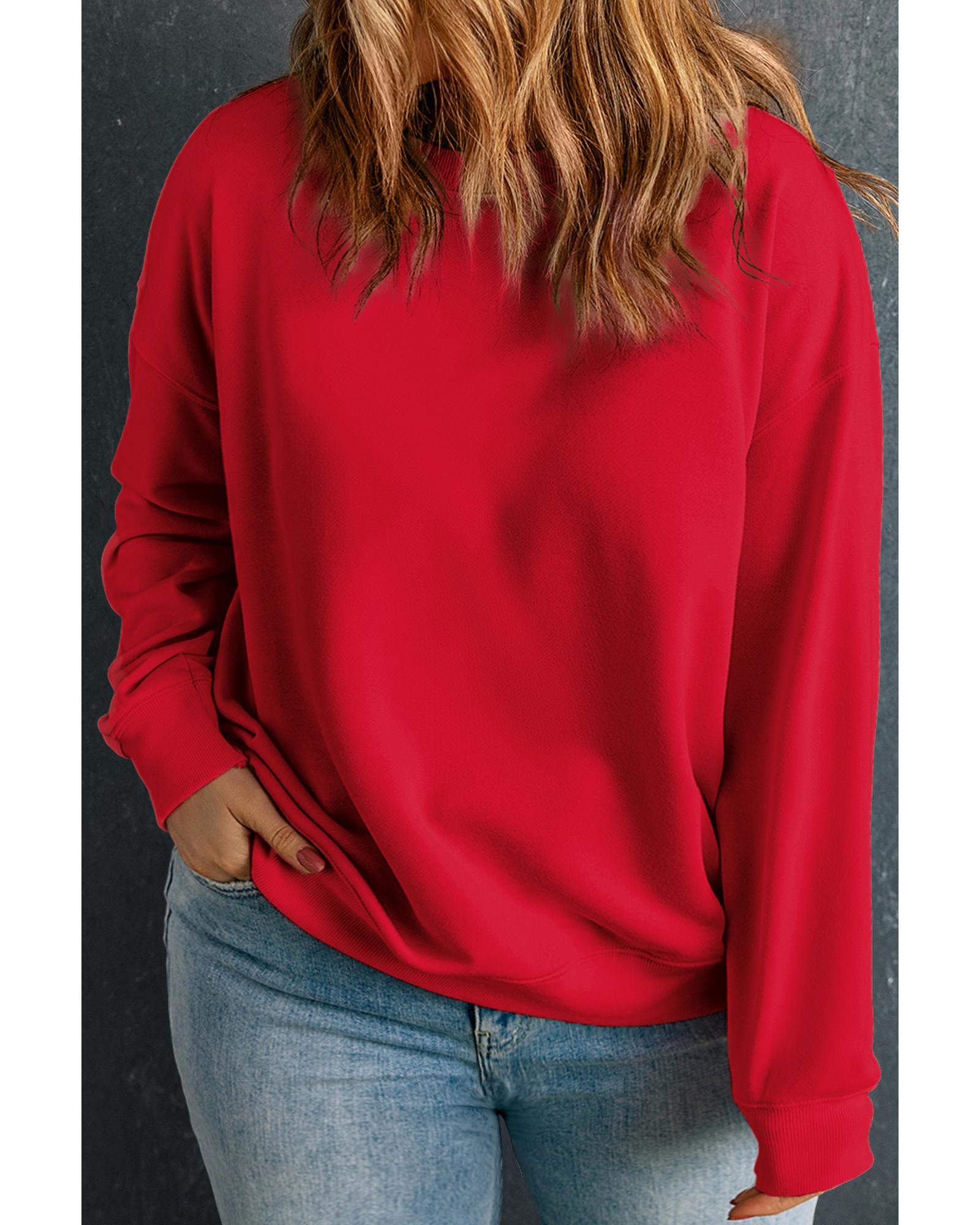 This plus size sweatshirt features a classic crew neck and drop shoulders for a relaxed fit. Made from soft, warm fabric, it offers comfort for lounging or casual wear. Its solid color design pairs easily with any outfit, making it a versatile wardrobe addition in sizes tailored for curvier figures.