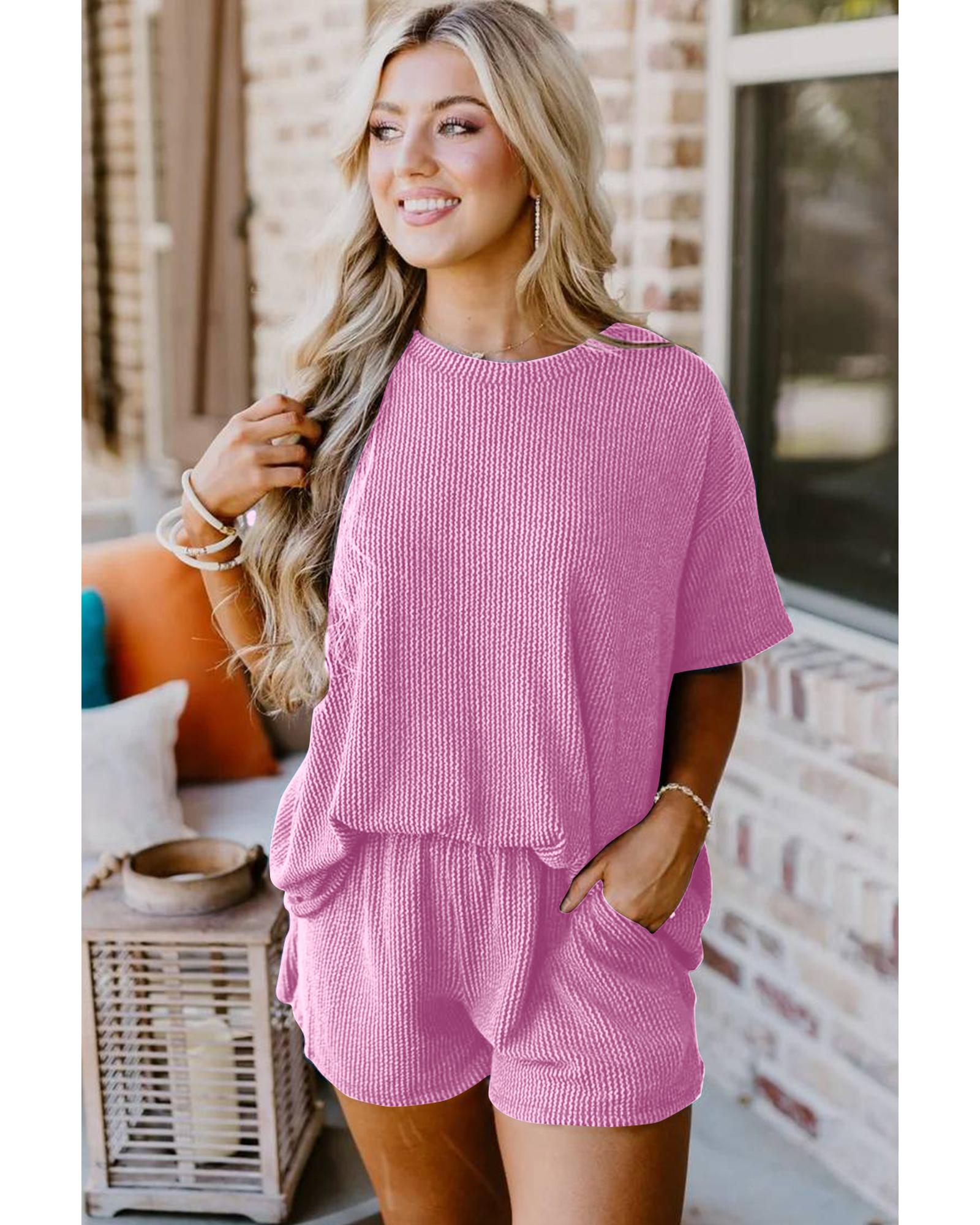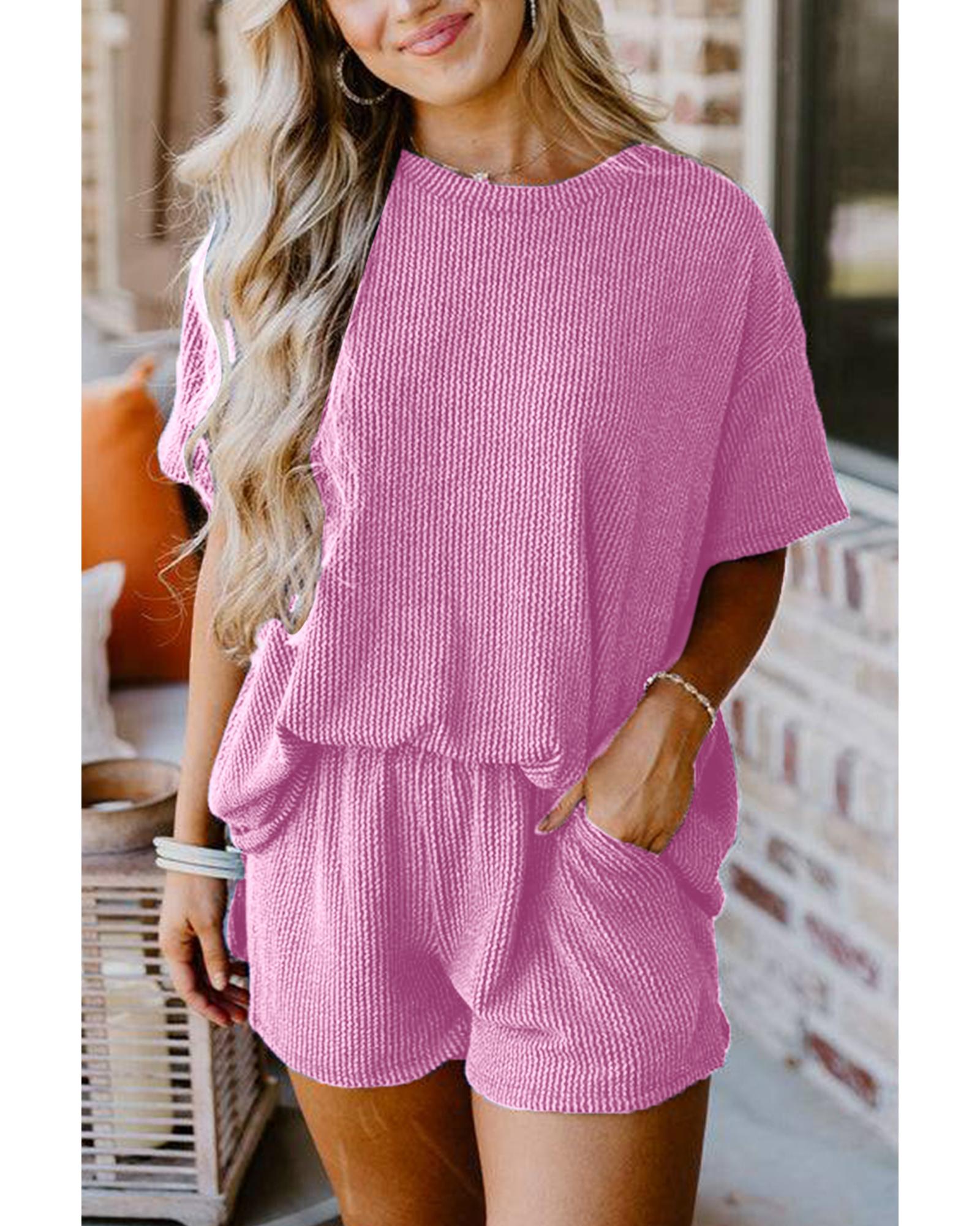 Ribbed Textured Knit Loose Fit Tee and Shorts Set