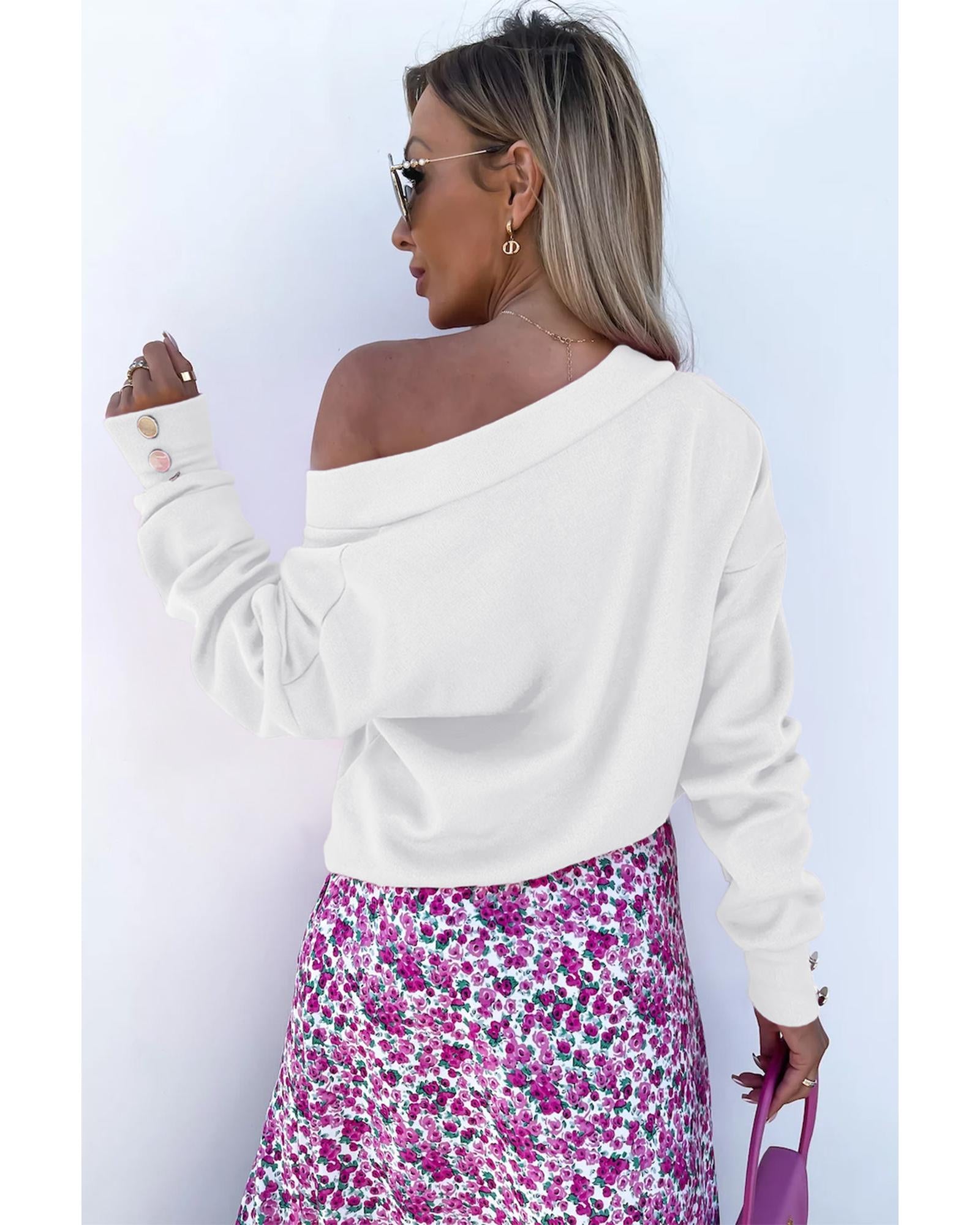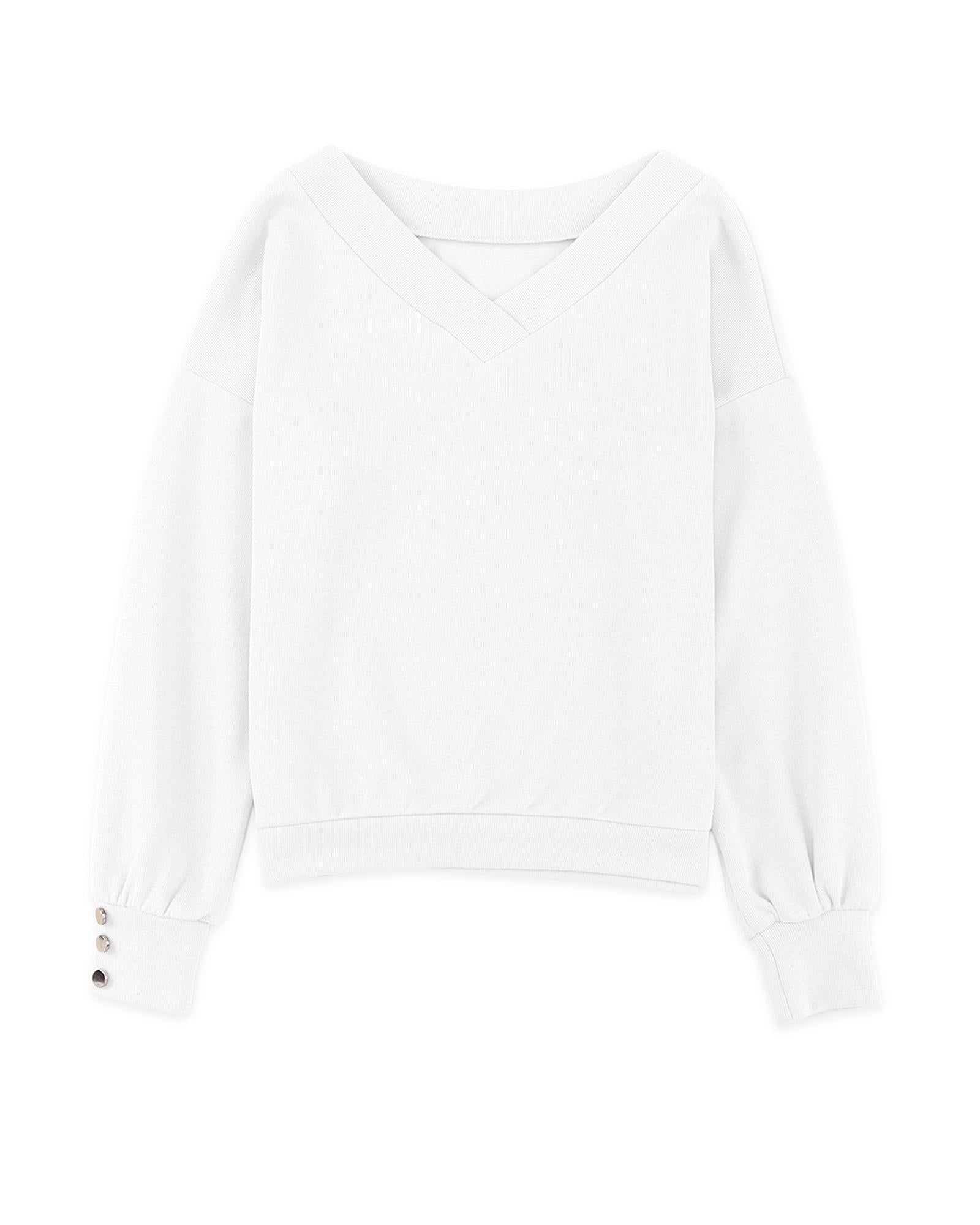 This knitted sweater showcases a stylish fitted shape aligned with international sizing for a comfortable, warm fit. Its timeless solid color makes it easy to pair with various outfits, ideal for both casual days and more refined events. The elegant V-neckline adds a graceful charm, while the buttoned cuffs introduce a distinctive and fashionable element, blending style and practicality effortlessly.