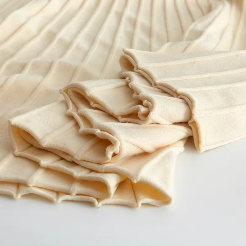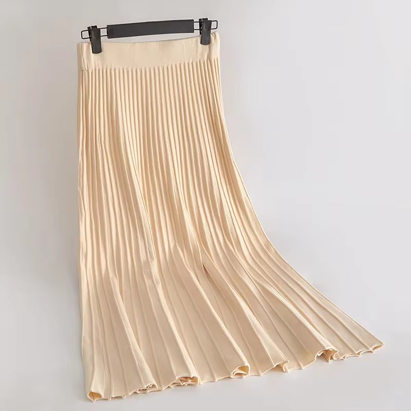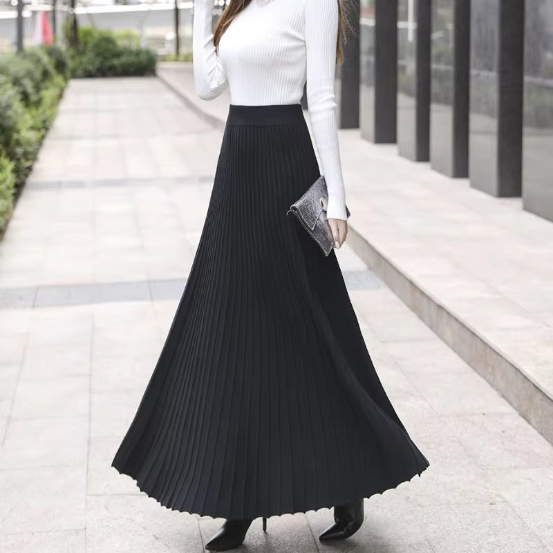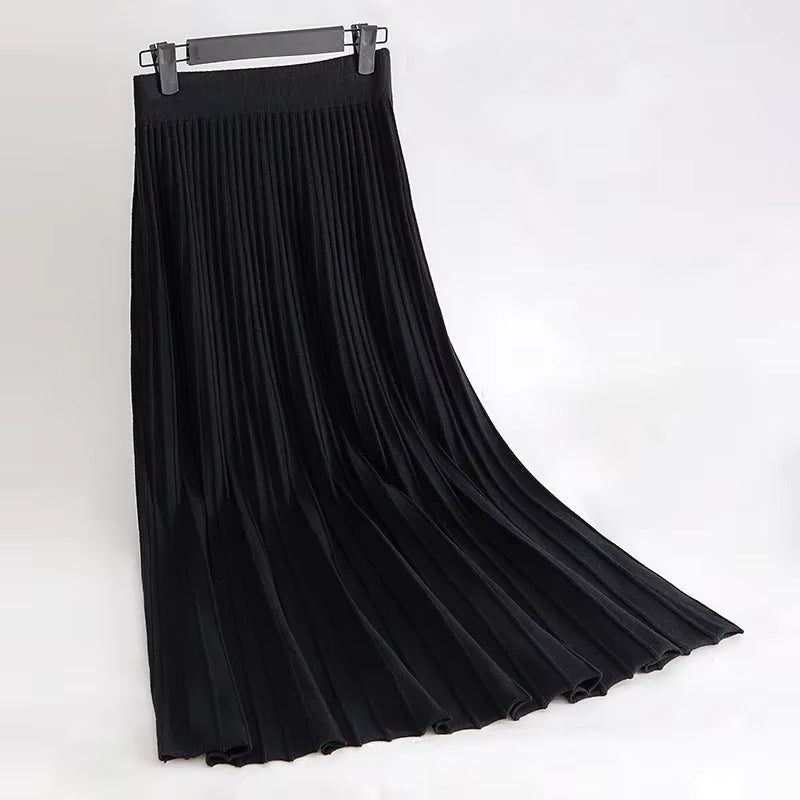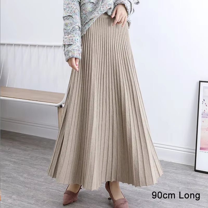 This draped rib pleated long knitted skirt offers a graceful silhouette with its flowing pleats and textured rib knit. Designed in a versatile free size, it adapts comfortably to different body shapes, combining style with ease. The elegant draping adds movement and sophistication, making it a perfect choice for both casual outings and refined occasions. Crafted for comfort and style, this skirt brings a polished look to your wardrobe with a timeless knitted design.