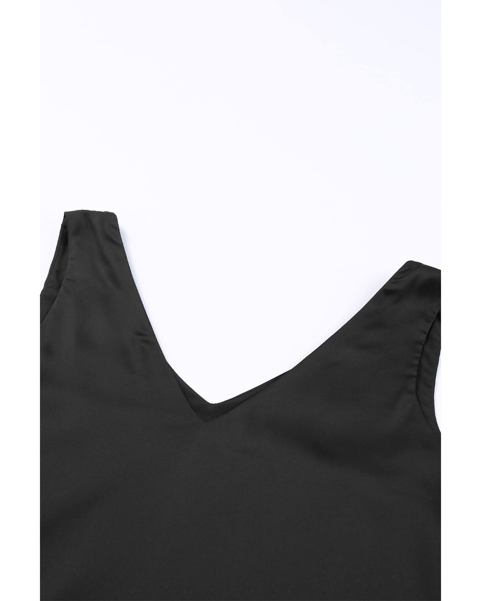 This deep V neck loose tank top features a relaxed fit and elegant neckline at front and back. Made from lightweight polyester, it offers comfort and breathability for warm days. Its versatile design pairs effortlessly with skirts, shorts, or jeans, making it perfect for casual, beach, or layered summer looks.